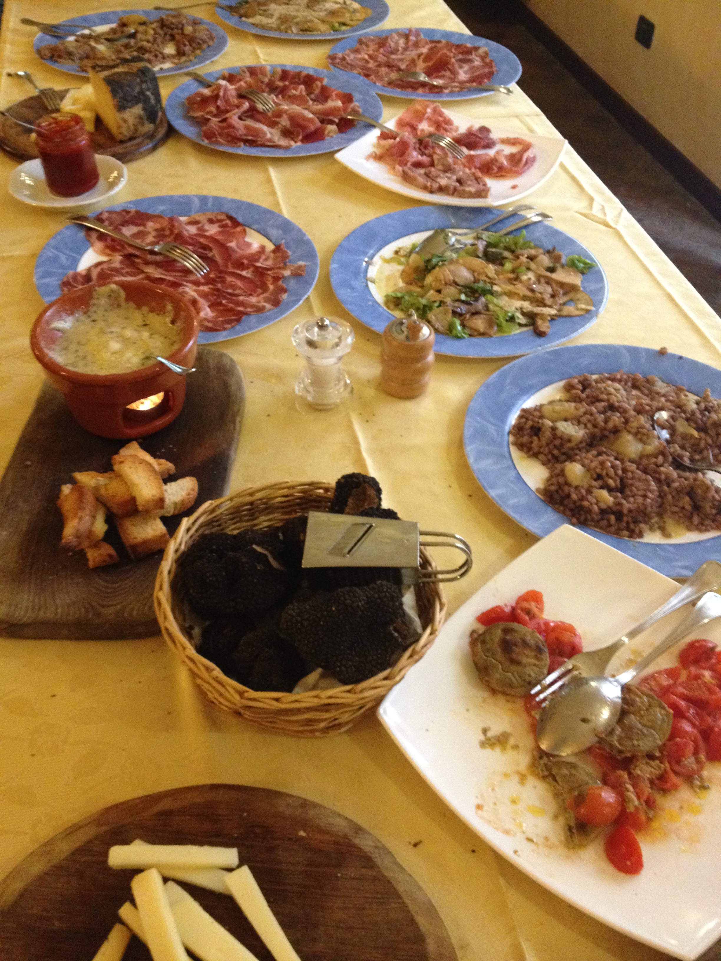 It included a huge variety of delicious sliced meats, a lentil salad, this amazing apple and porcini mushroom dish, fresh bread, and yes those are truffles you see in the foreground, which they literally shaved over everything. Soooo good.