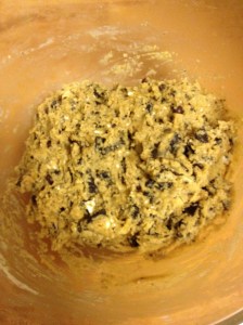 Makes about 40 small cookies (at least that is my estimate – mine made less because I ate a certain amount of the dough)