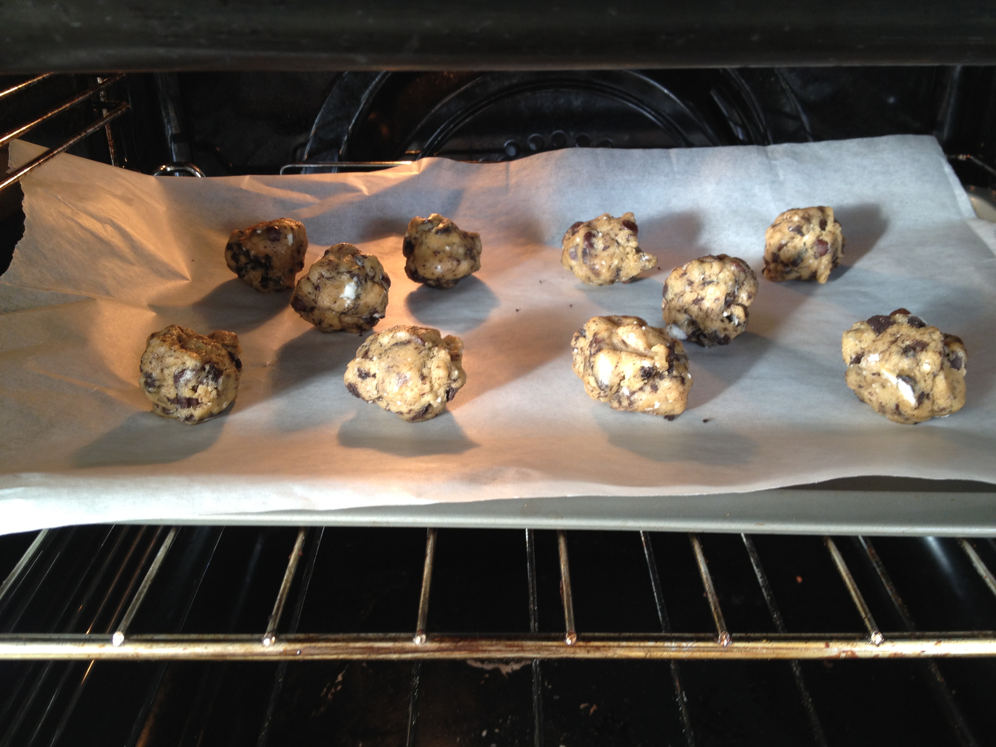 Cookies going into the oven – you can definitely put more on a sheet than this, I was just making a small amount on that particular day