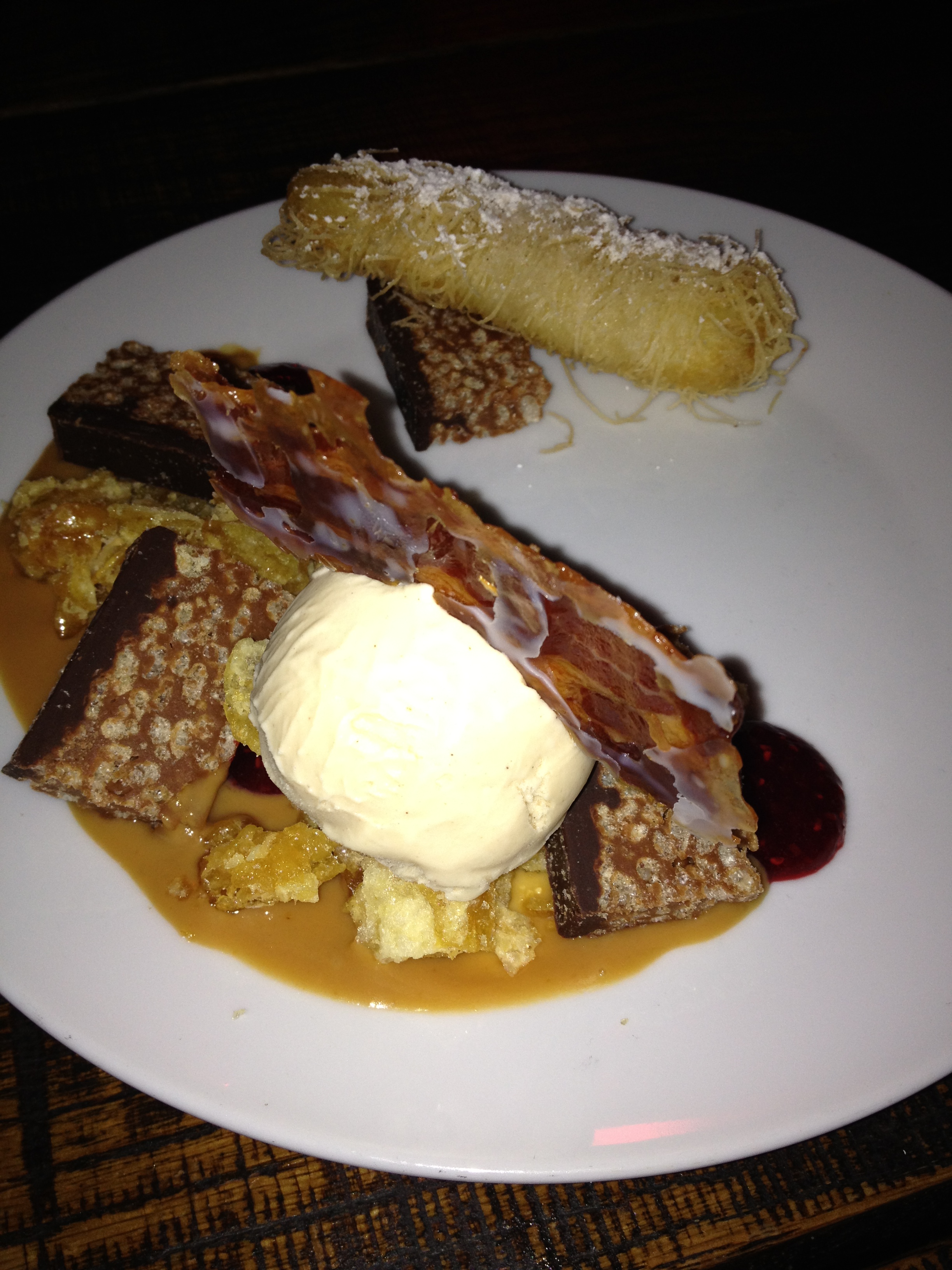 But the best is definitely the dessert called Stoner’s Delight 2.0. Firstly, how could you not love a dessert with a name like that. It has peanut brittle ice cream, a banana fritter, mars bar like rice krispie treats, and candied bacon. Hello excess!