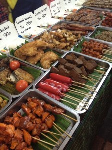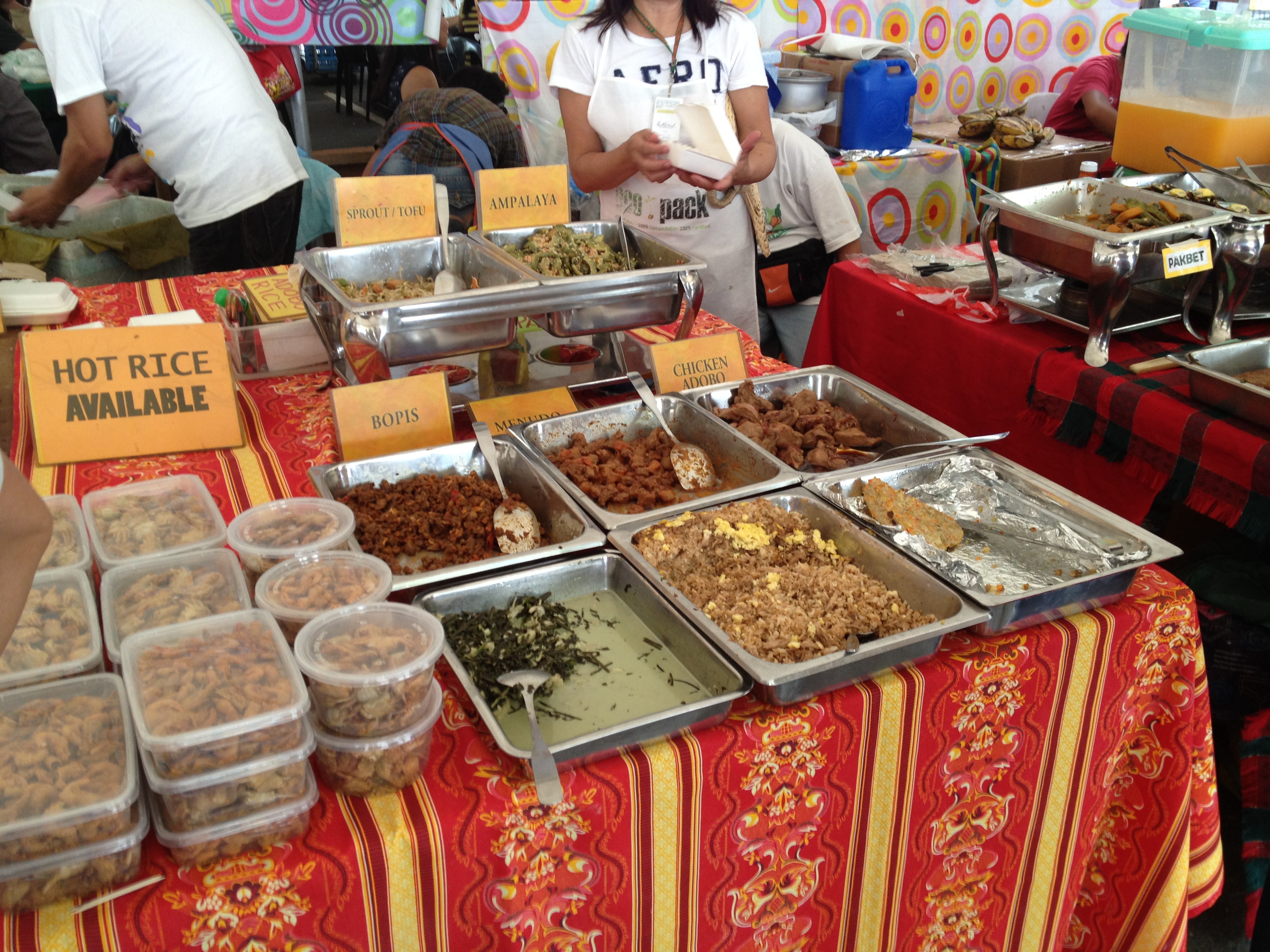 I meant to write about markets in Manila ages ago, as this happened my first weekend here, but life got crazy. Anyway, as some of you may know, my one of my (many) obsessions is food markets all over the world. I feel that there is no better way to pick up on a country’s culture than by exploring its food in a preferably crazy open-air market setting where you can stroll around, people watch, and eat lots of things. Pretty much my idea of a perfect daytime or evening activity. Manila has a few weekend markets in its more trendy areas, Makati and Taguig City, known to locals as The Fort. The daytime one I went to in Makati was fantastic and kept me entertained for quite a while.
