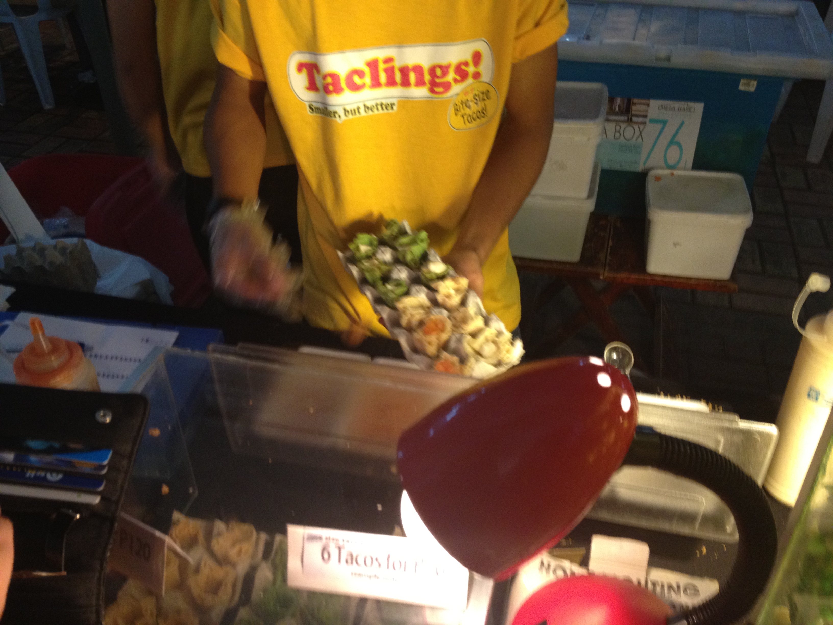 The most popular stand at this little market was the Taclings stand – tiny mini taco shells with fillings served in egg cartons. So creative and adorable.