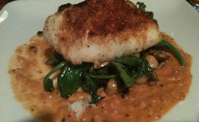And potentially the best of all for last – halibut atop a bed of greens and beans. Fish was perfectly cooked and it was a great end to the meal.