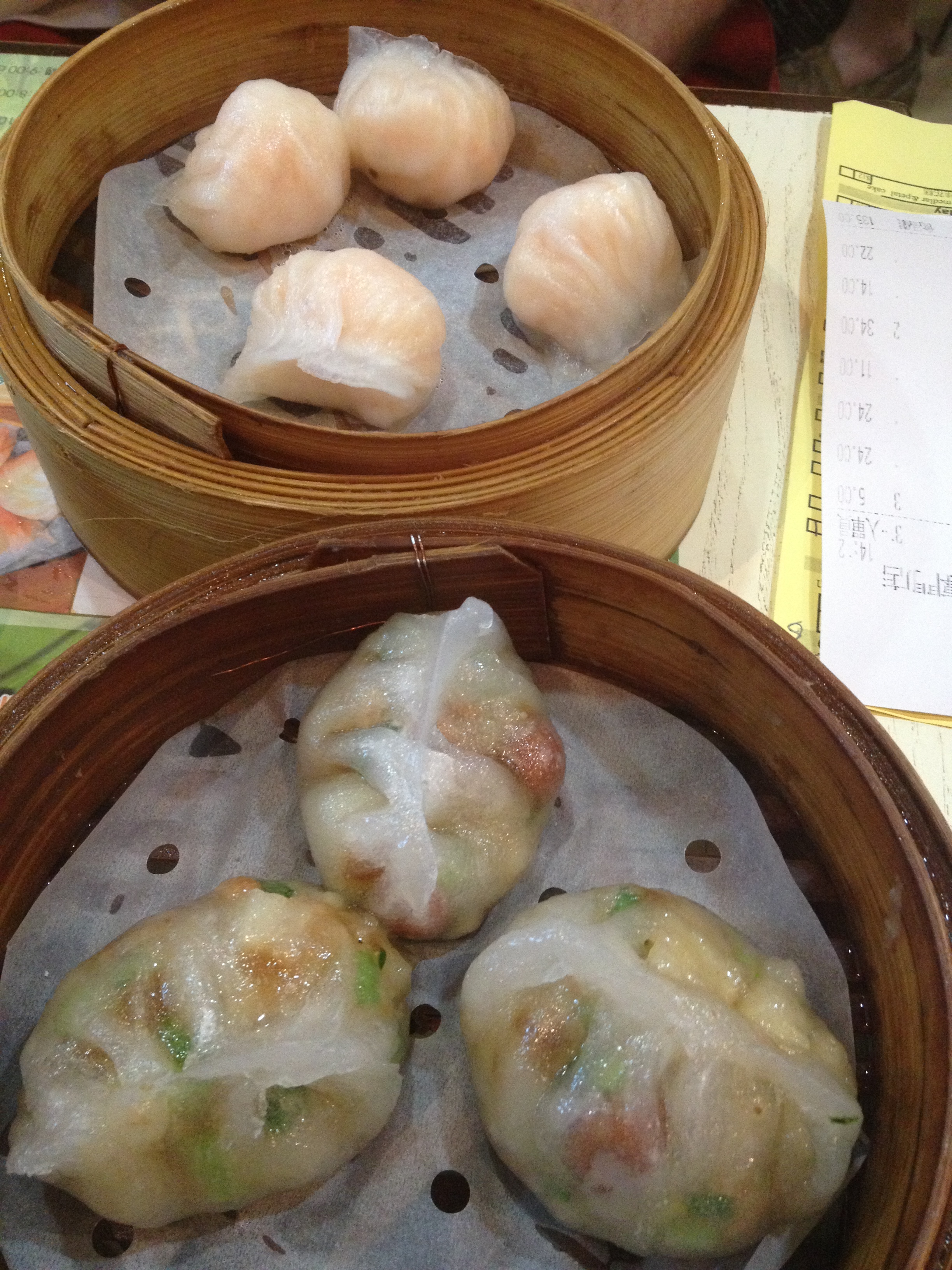 In the back – the standard steamed prawn dumpling. Even more exceptional were the veggie steamed dumplings in the front – so good!