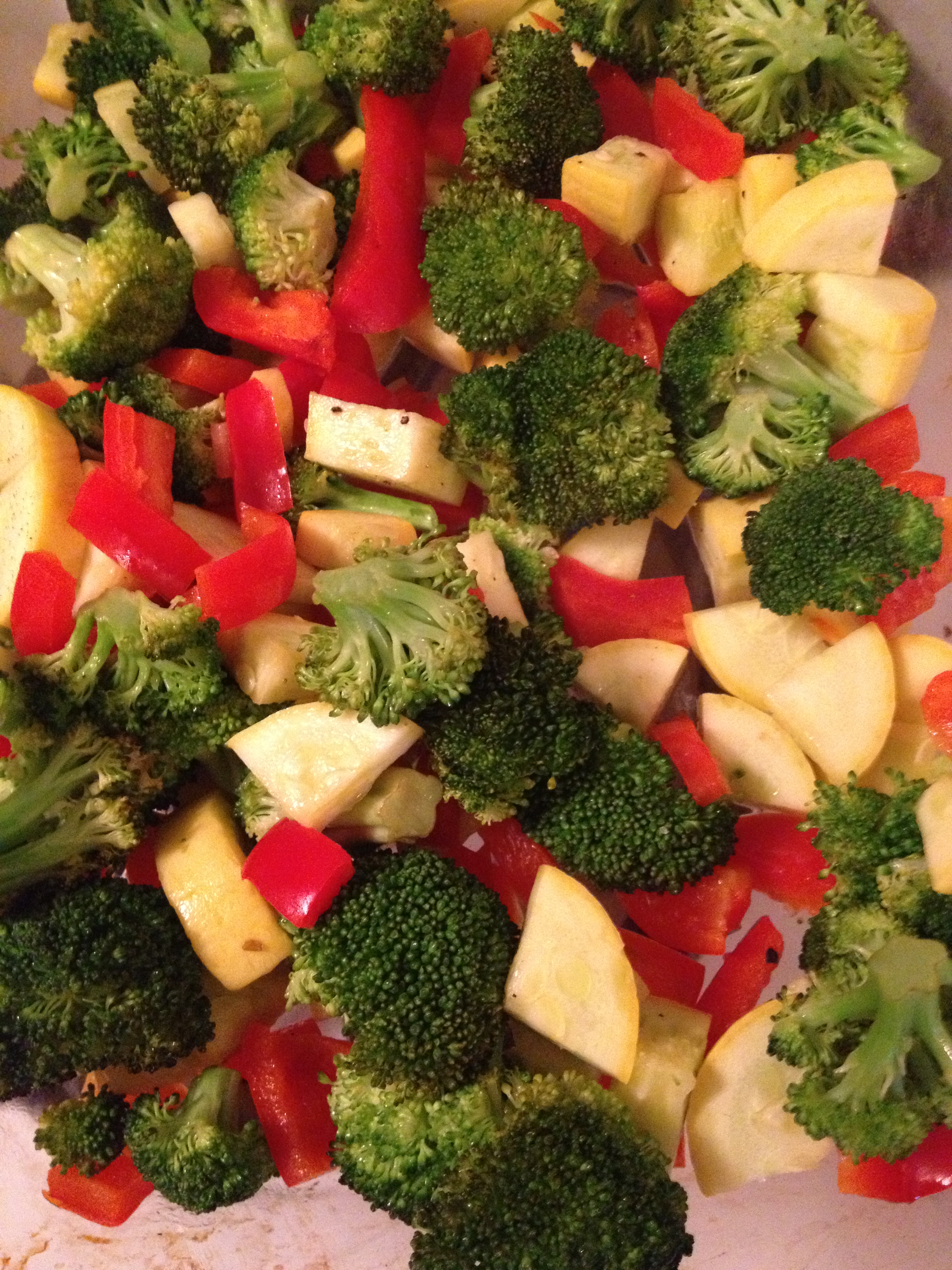 I love guacamole but the fact is, it’s honestly quite high in fat and not that good for you. (Especially when you are eating it with tons of chips) So when I found a healthy guacamole recipe that uses cannelini beans as a substitute for an avocado I immediately wanted to try it, and it’s been a success at parties as well (people can barely tell the difference). It’s great as an appetizer with little crackers or carrot/celery sticks, and makes a nice accompaniment to a big salad. For the main attraction, I essentially bought all vegetables in my line of sight at Trader Joe’s, roasted them, and put them on a bed of arugula (aka rocket, for you Aussies out there) and mixed greens. Heaven.
