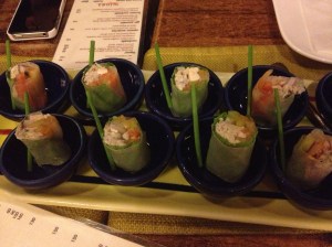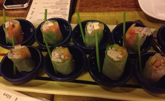 Appetizer of fresh lumpia – this is like the Filipino twist on Vietnamese fresh rolls, which are some of my favourite things ever. These are great – very light and a nice change from some of the heavier standard fare.
