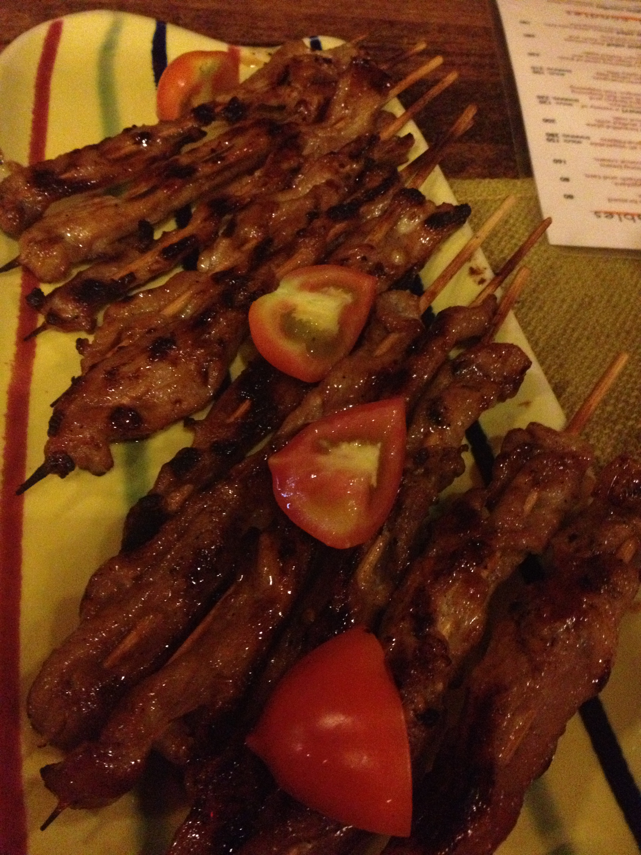 Grilled pork skewers. Even though I do like to call myself vegetarian most of the time, I can’t pretend that I am in the least since relocating here. Plus meat on a stick is always fun.