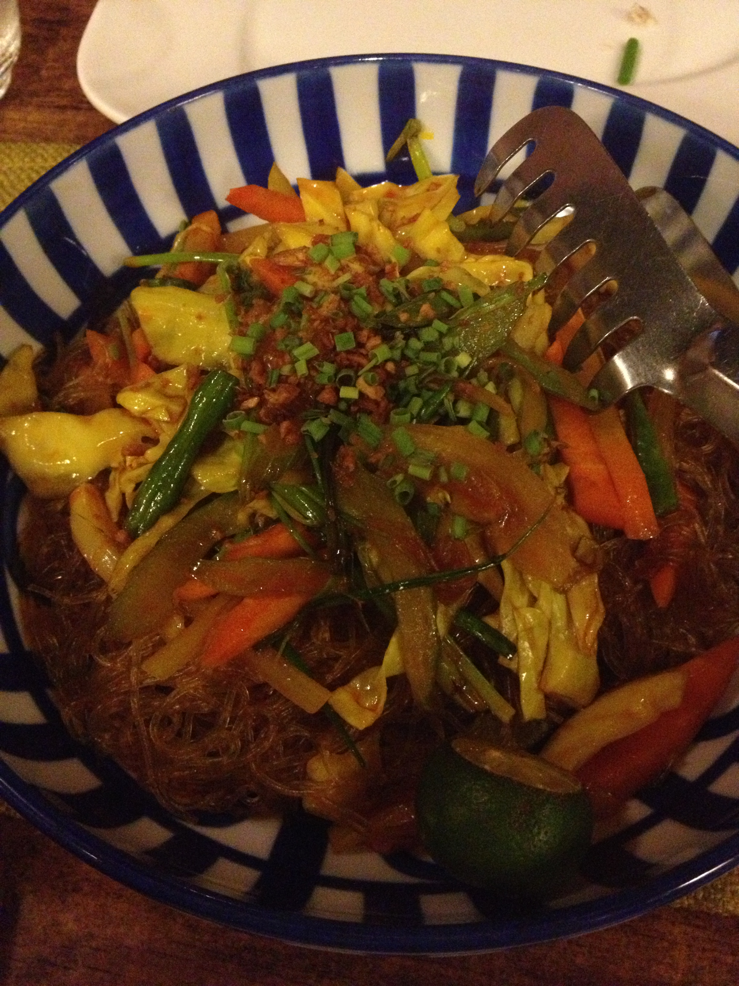A delicious rice noodles and veggies dish – very typical Asian-style fare