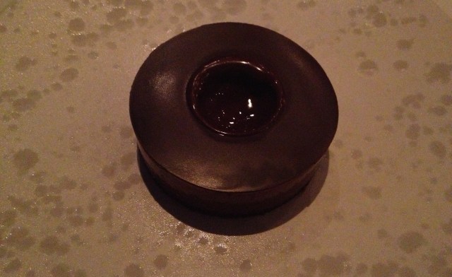 DESSERT TIME! Which of course is what I was looking forward to the most. This is the snow egg, which has been a signature dessert of Quay’s for years and years and changes flavours with the seasons. At the moment, they are dishing out white nectarine flavoured ones. Do not be fooled by its relatively innocuous appearance – in the food world, this dessert is known as perhaps one of the most complicated ones to make in the entire world of pastry. There are at least ten components (to get a feel for what it would be like to make one of these babies go here) and each part of it is surprising and exciting. Basically, the “egg” part is a meringue-esque outer layer (somehow both crispy and feather-light) that surrounds a sorbet center, and it’s served over a granita that is also white nectarine flavoured. It was incredible and every bit as exciting as I was hoping for. It was also the PERFECT contrast to…