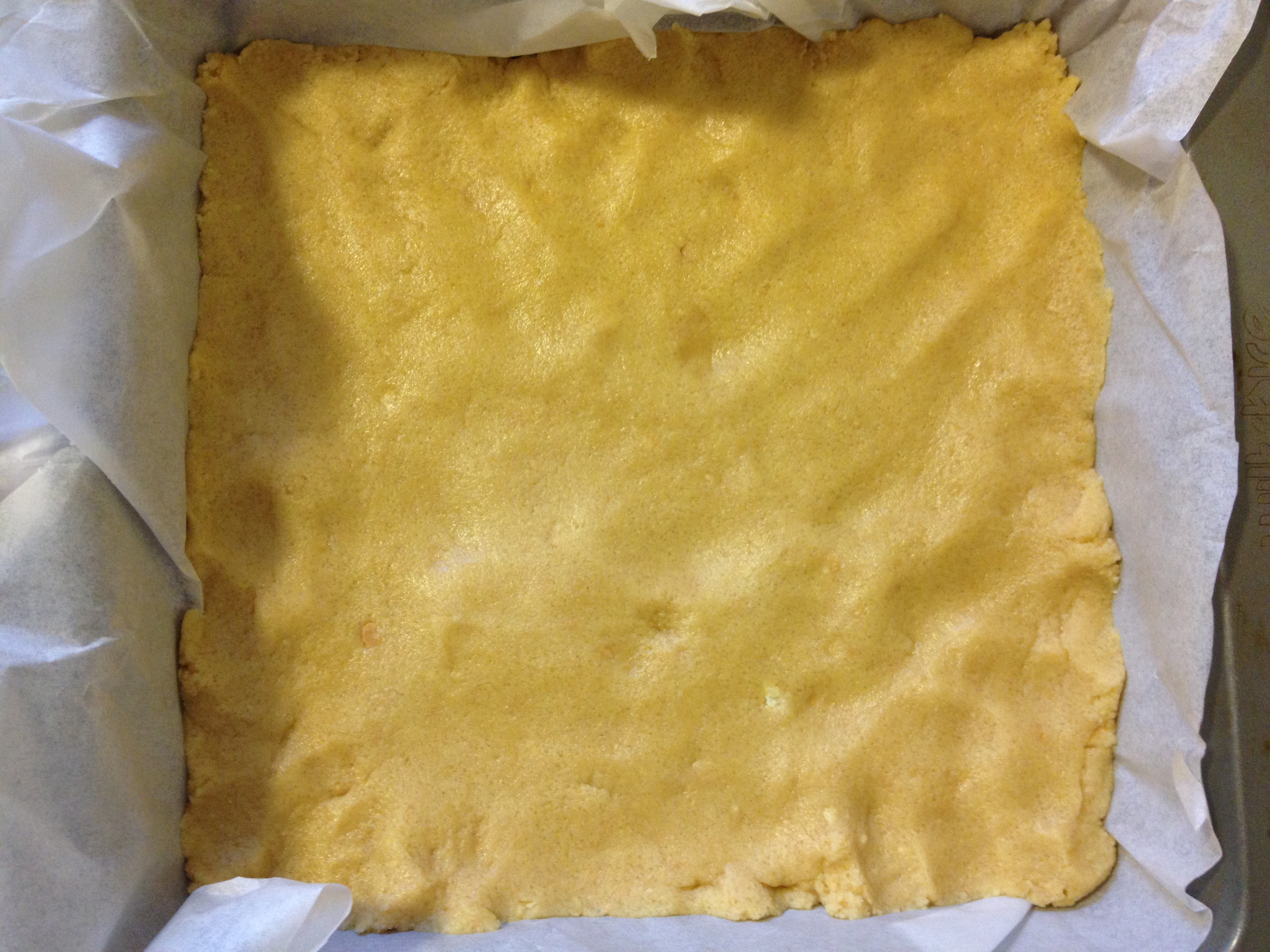 Preheat oven to 180 C / 350 F. Lightly grease a square baking pan or line with parchment paper. In a large bowl, cream butter and sugar and then add eggs and vanilla; beat until combined. Make sure the graham crackers / Marie biscuits are pulsed in a blender or crushed finely, and add them to the bowl along with the flour, baking powder, and salt. Mix until combined – it should form a dough that you can handle.