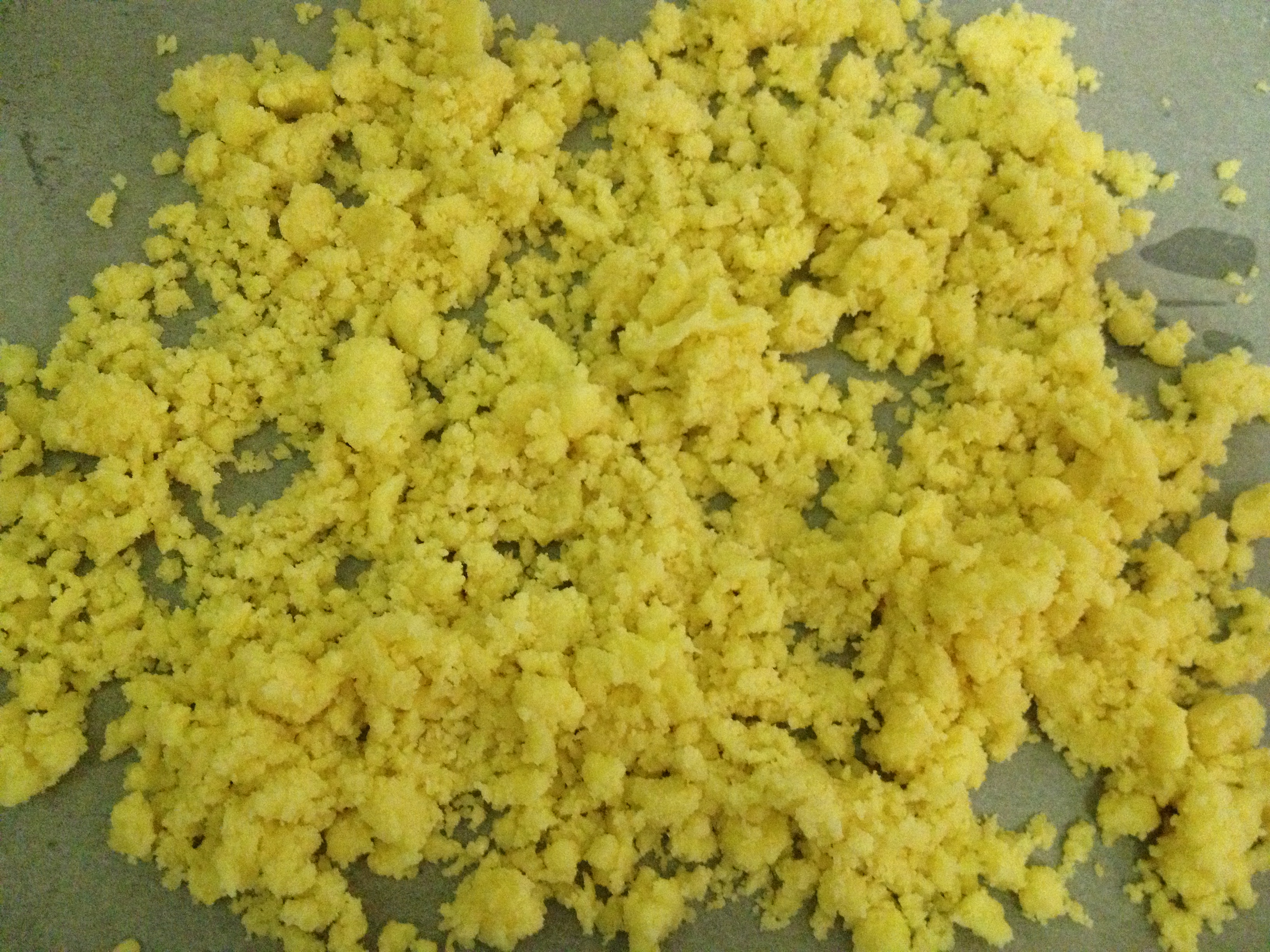 Baked milk crumbs ready for cooling