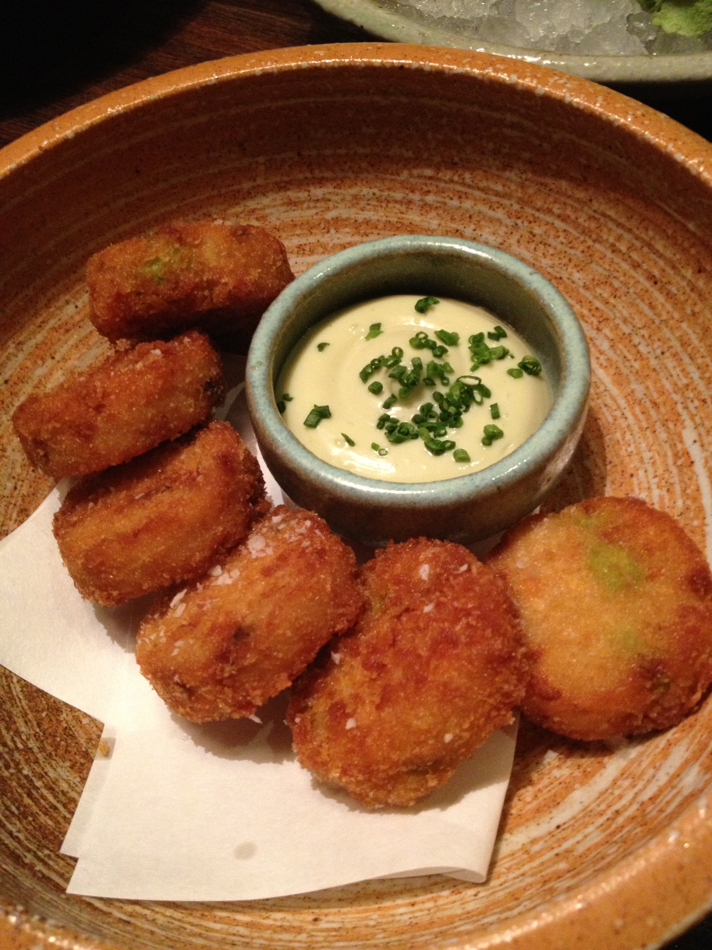 Panko rice balls – basically a Japanese-inspired version of arancini. Rice with mushrooms that was then fried in a little ball. Delicious.