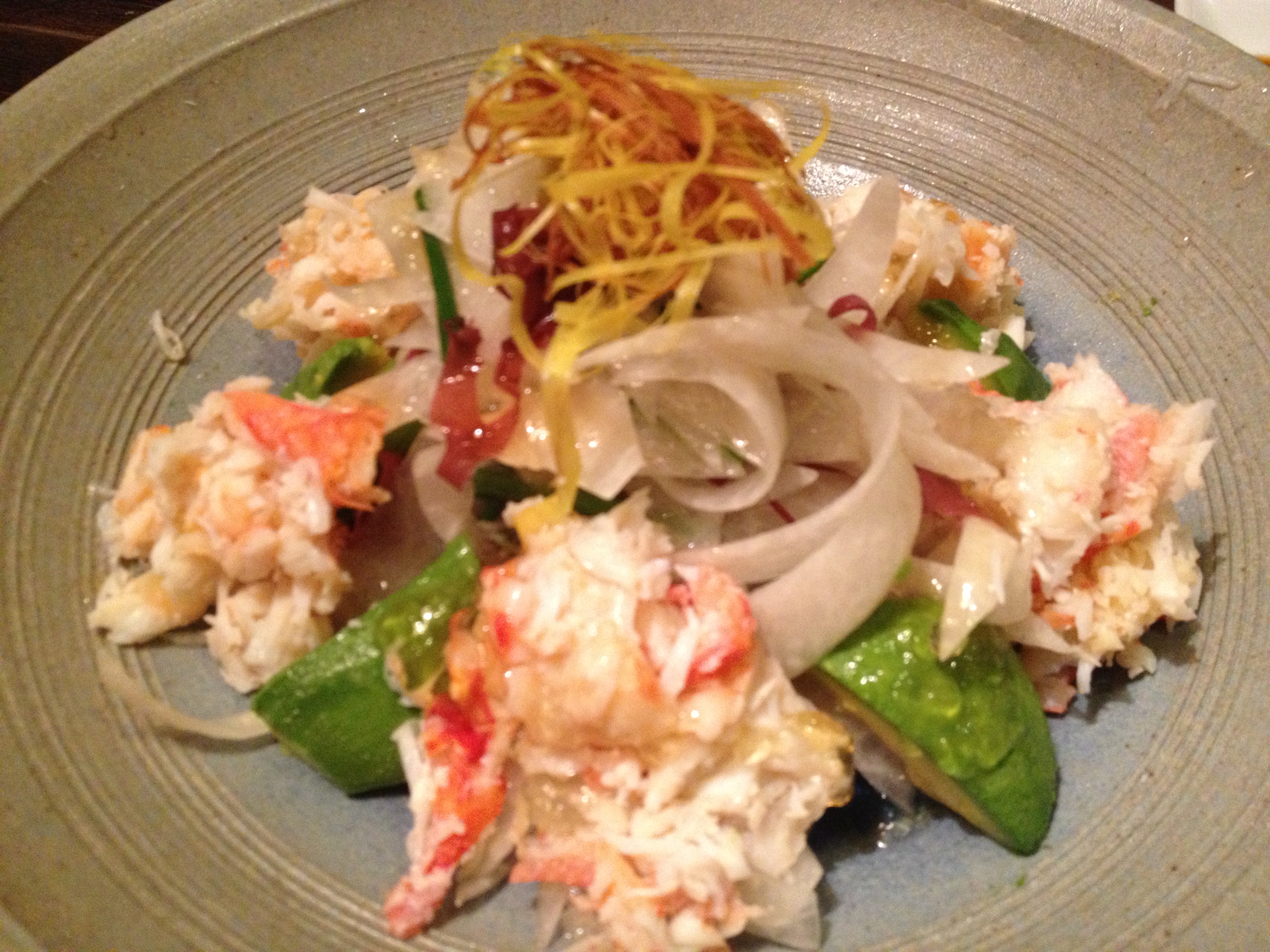 Alaskan king crab salad with avocado and fantastic thinly shaved white radishes