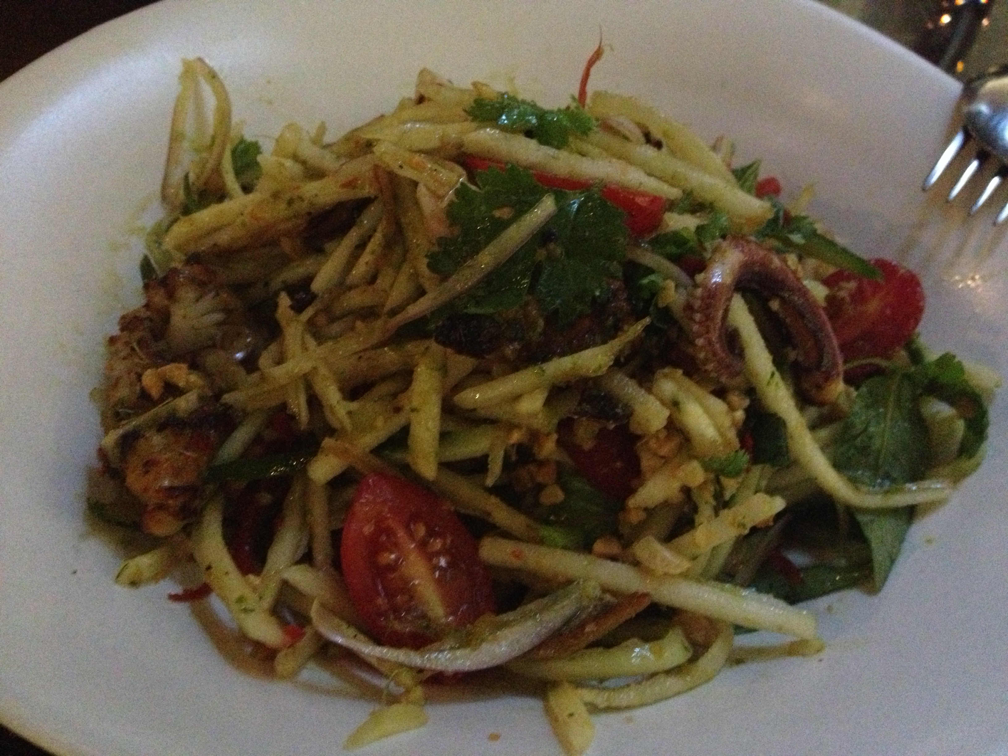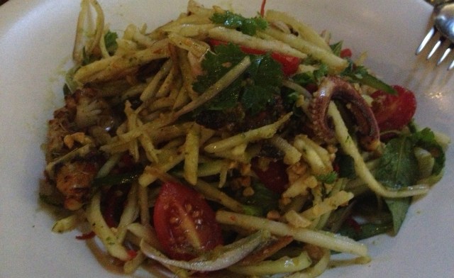 Calamari, green mango and cucumber salad, with peanuts and crispy anchovies – this was the best dish of all for sure. I loved the grilled calamari with the green mango and I normally don’t like anchovies, but the texture and crunch they added was fantastic