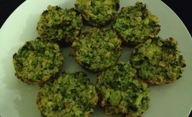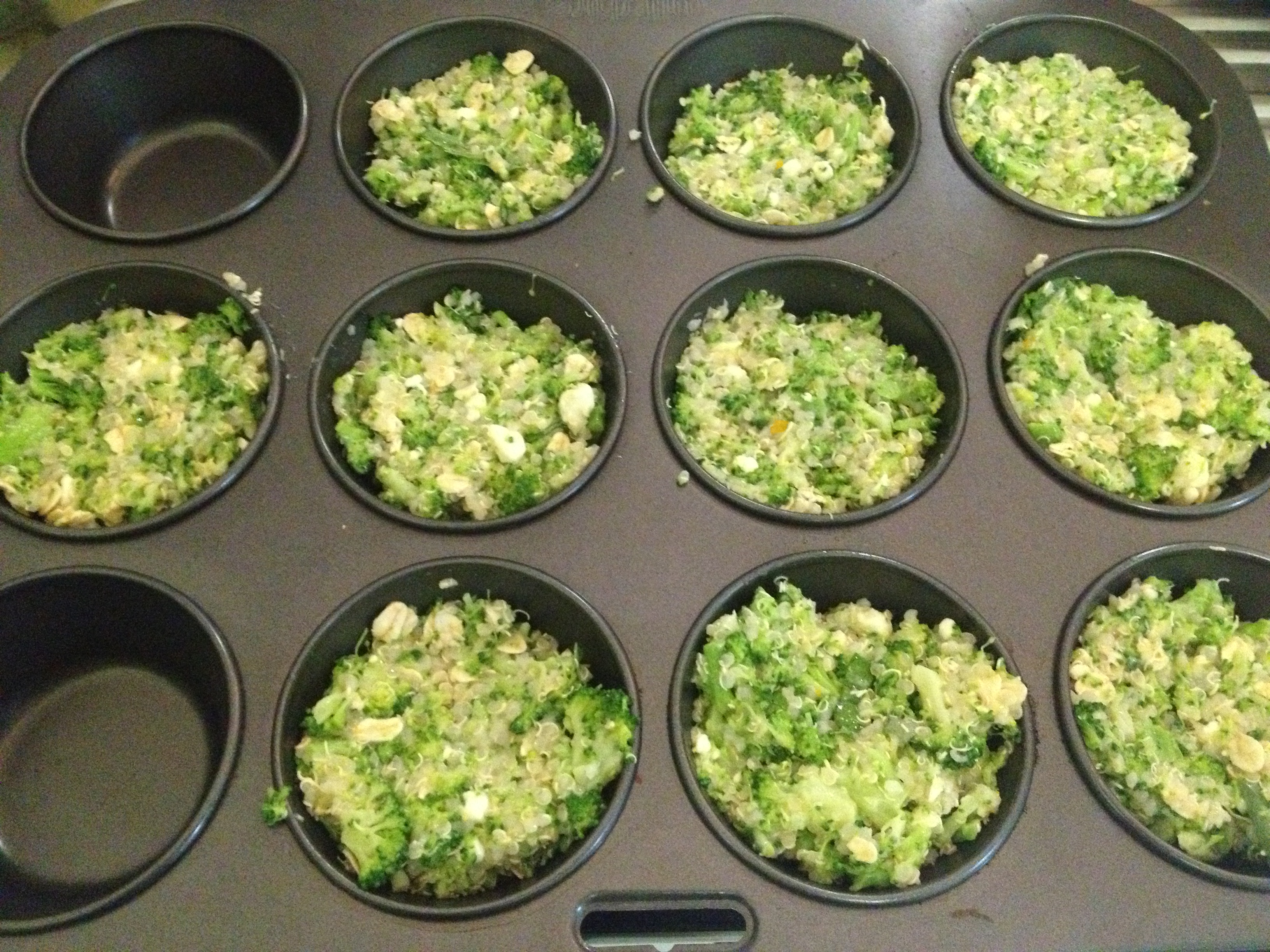 In my never-ending quest to find new methods of working quinoa into dishes, I came across this funny little recipe on a Polish blog that google had to translate into English for me. I wasn’t sure if some of the words were really correct, but I took what I could from it and voila, a delightful little snack. This isn’t quite substantial enough for a dinner unless you eat them with a salad and a side of some other sort, but it’s a great lunch or snack. I love the automatic portion control that comes with the cute way they are baked in a muffin pan.