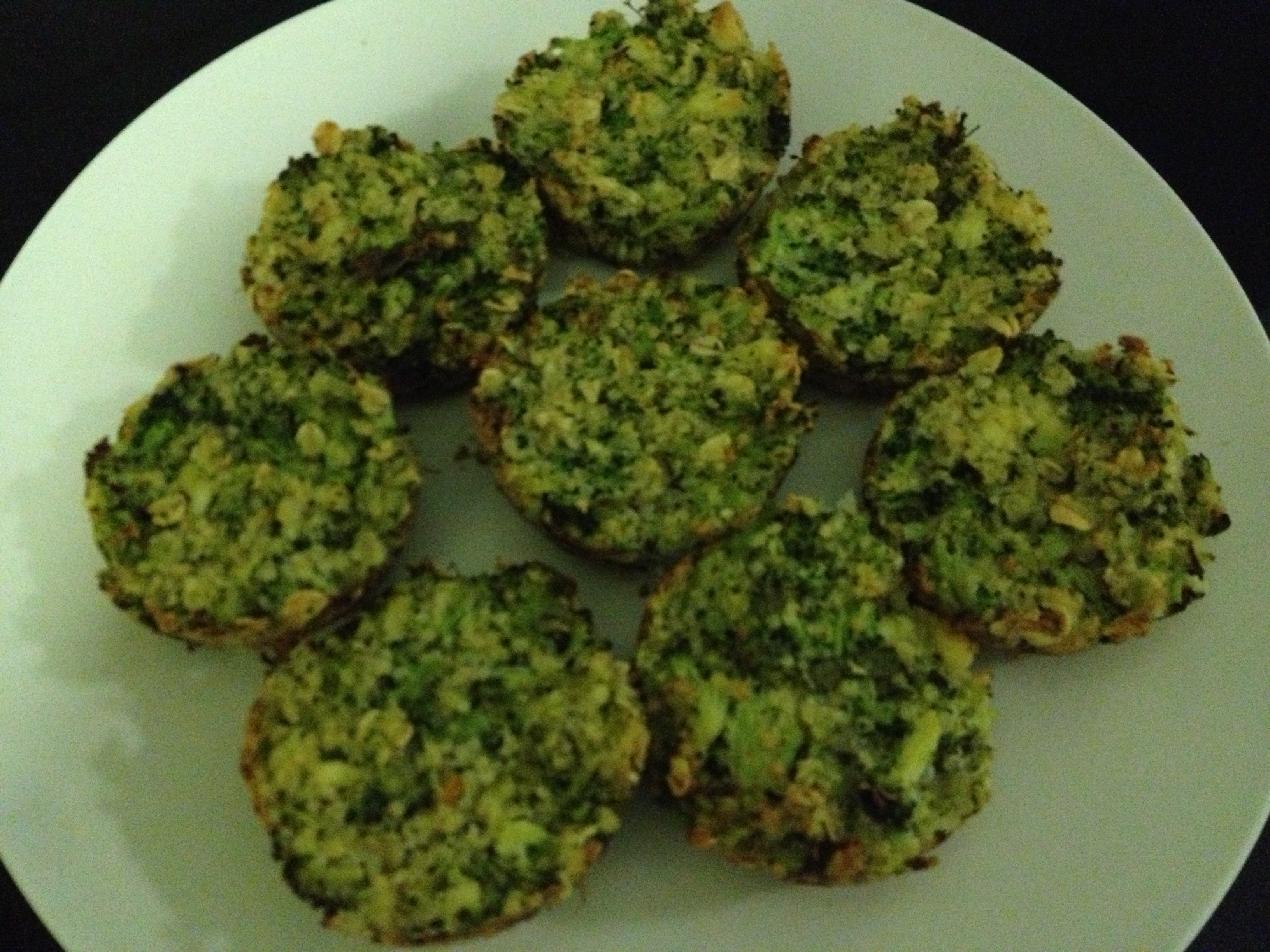 Set aside and cook your broccoli – just chop it up into a bunch of little florets and put in a pot of boiling water. Let it cook for 3-5 minutes but keep a close eye on it as overcooked broccoli is gross. Drain the water out and let it cool so you don’t burn yourself. Then chop it finely and mix into the quinoa. Add the eggs and oatmeal and then mix in the salt and pepper. This won’t be a dough by any means, but it’s easy enough to spoon it into a greased muffin pan. It would also look cute in little ramekins, or you could even make a slice of it by putting it in a square pan. But I liked the muffin pan idea because it’s automatic portion control and who can resist an adorable quinoa muffin pie thing.