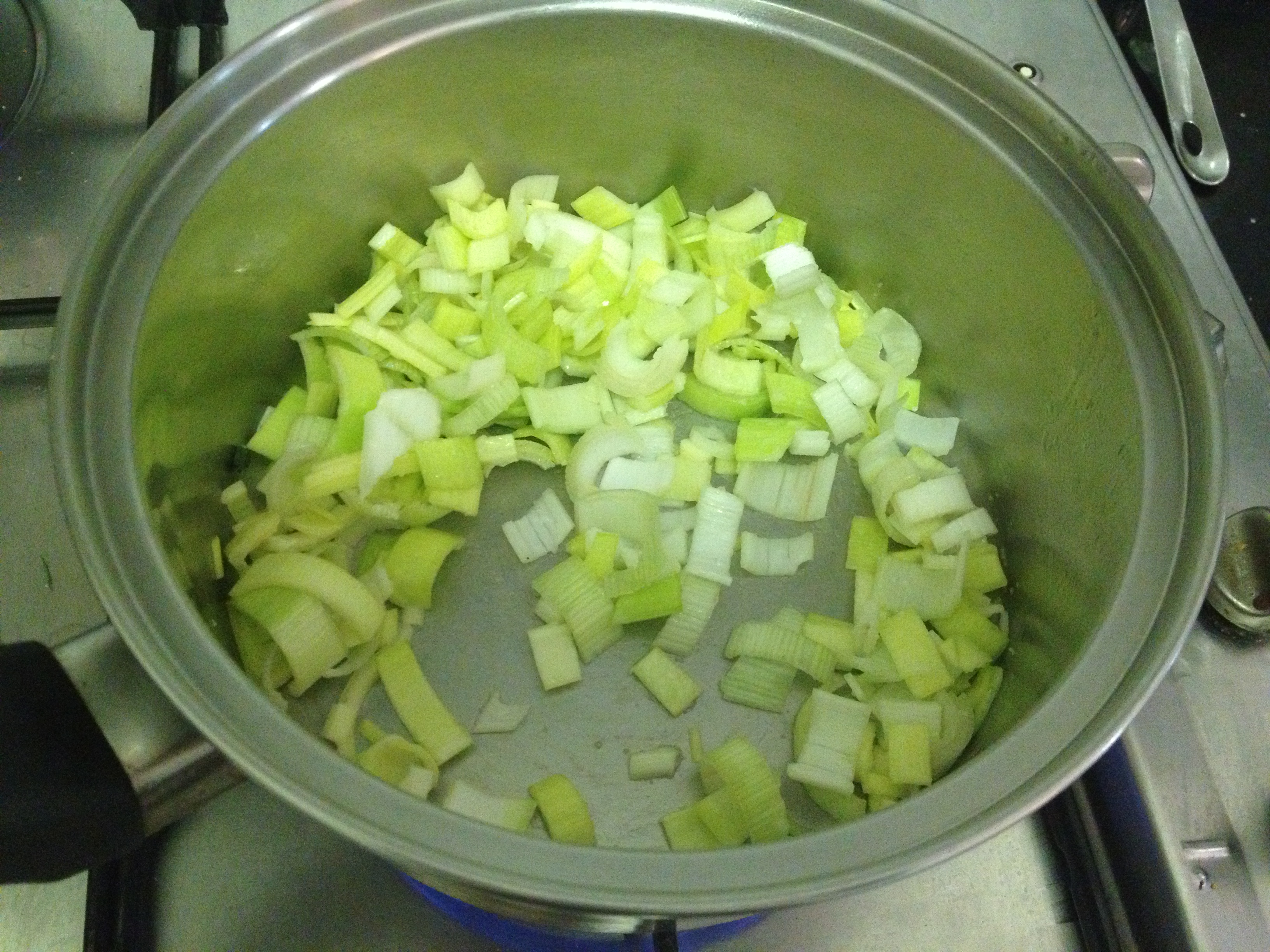 - 2 leeks, white and light green parts cut into ¼ in. rounds (see my prior post for a more detailed description on how to cut leeks)