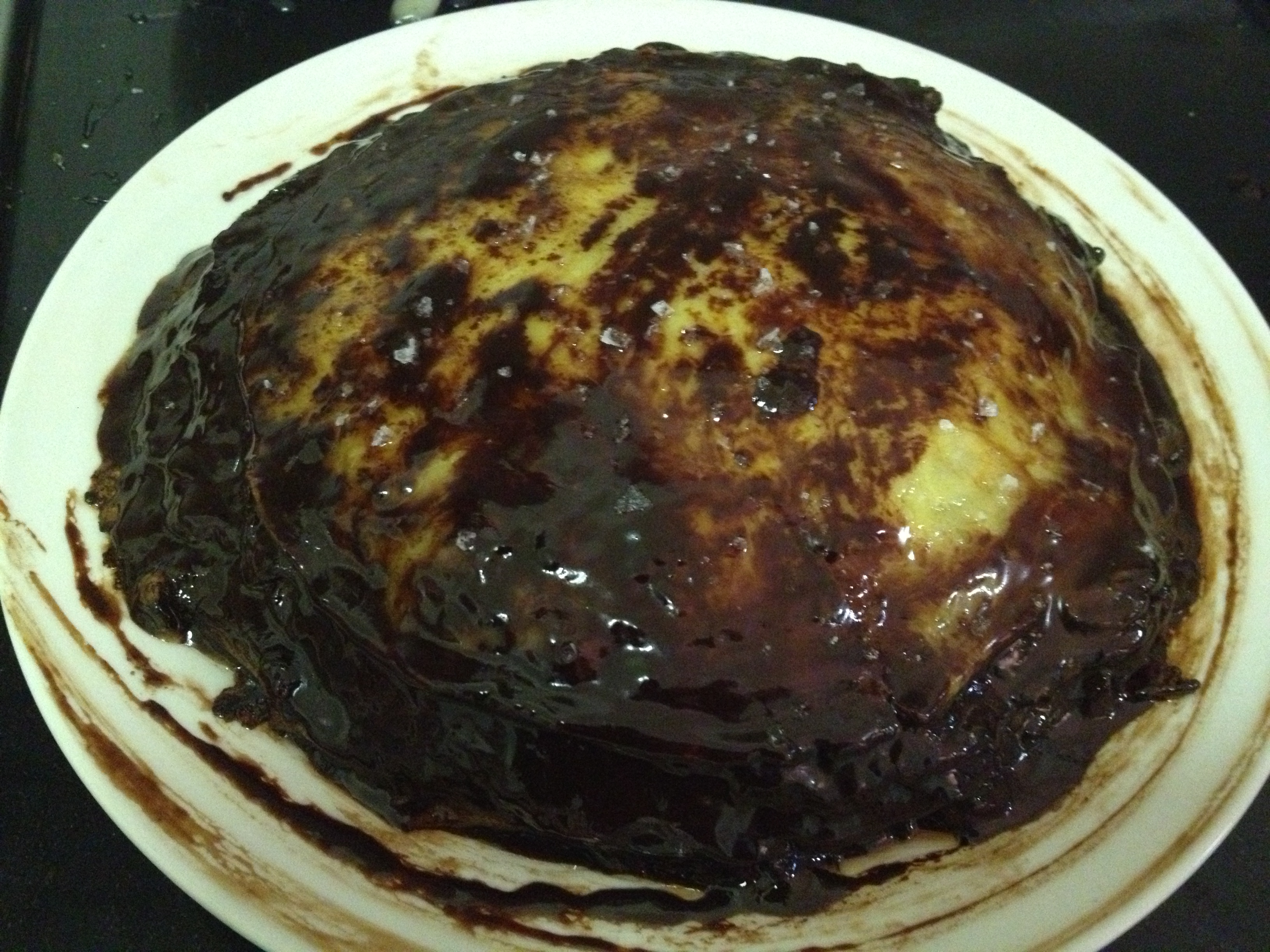 When you are ready to cook, preheat the oven to 180 C / 350 F and put your assembled crepe cake in for about 10-12 minutes until it’s warm. Transfer to a serving plate, which I assure you is only possible if in fact you are using the springform pan. Do not attempt otherwise. Warm the remaining ganache until it’s drizzling consistency. Drizzle the salted caramel and ganache all over the cake. If you want to get fancy, you could also top with a dollop of whipped cream and/or grated chocolate. Watch the look of awe on your guests faces when you cut the cake, revealing its multiple layers, and revel in the delicious glory of your dish. (yes, this is a necessary last step)