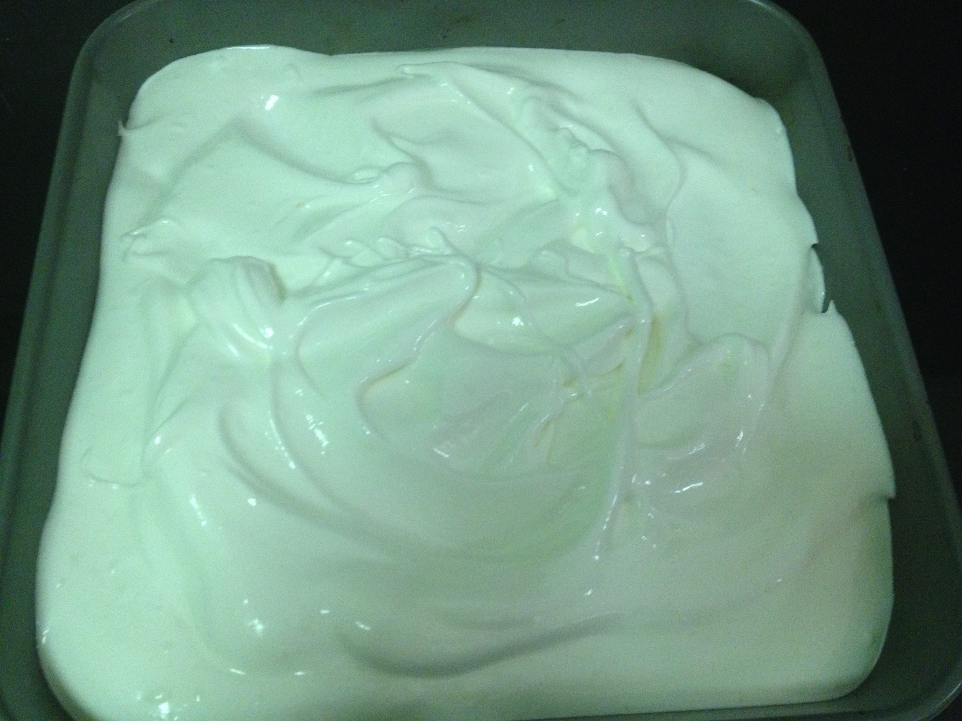 After letting it set in the pan in the fridge, spread the cooled chocolate all over the base and put back in the fridge to set