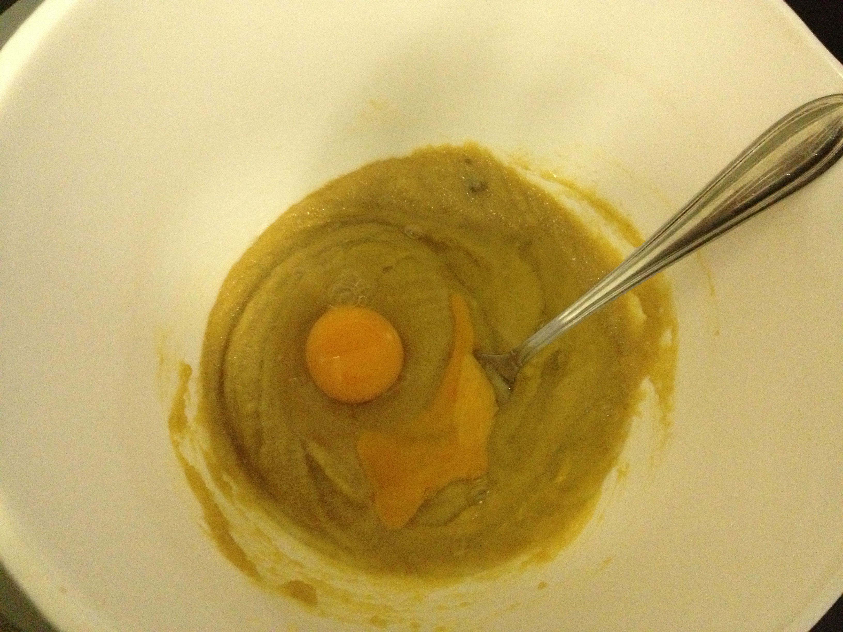 Adding eggs and vanilla extract to the creamed butter and sugar