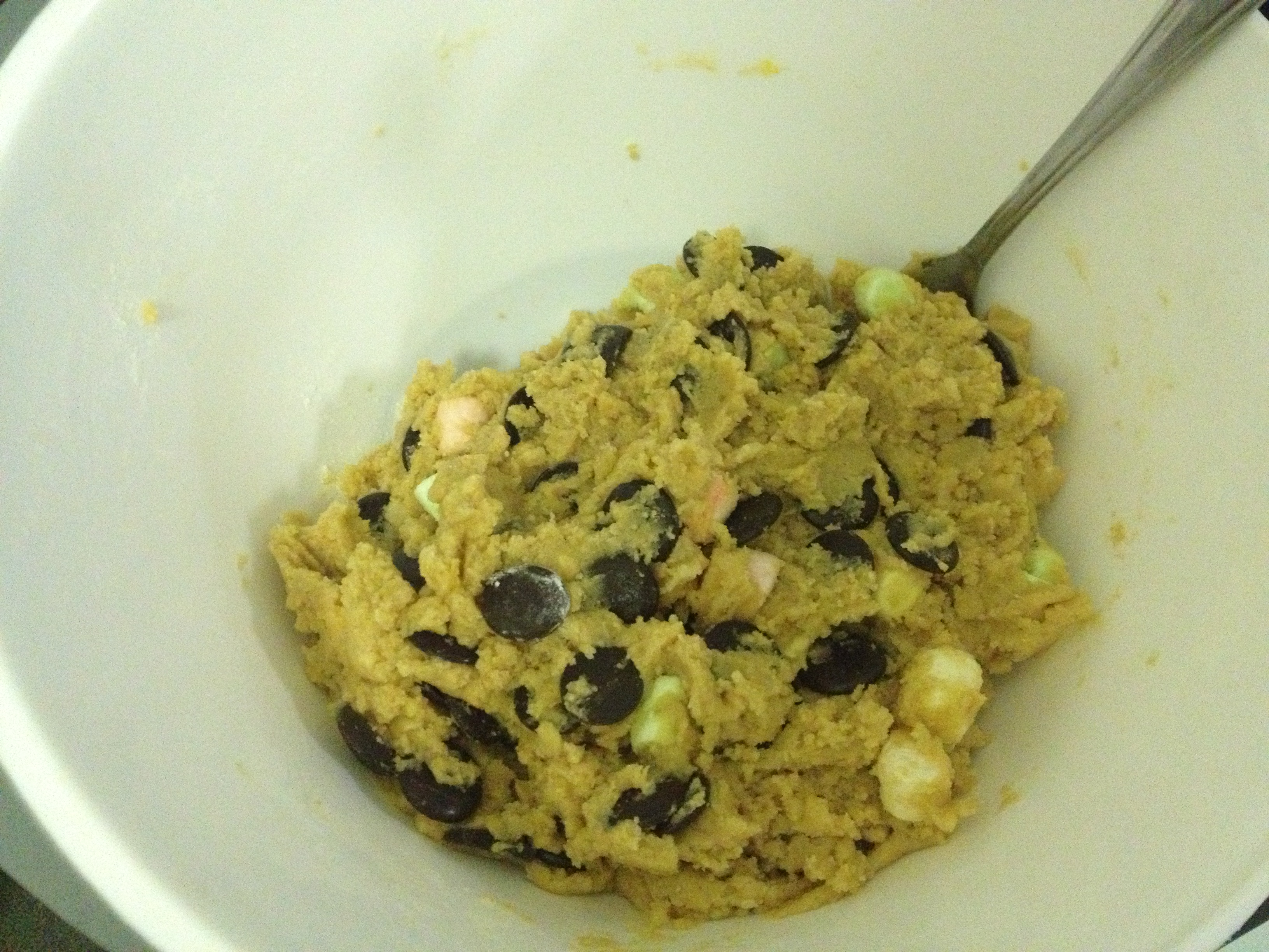 Cream the butter and sugars until they are fluffy. Then mix in the egg and vanilla until it’s combined. Finally, add the flour, graham cracker (or other biscuit) crumbs, salt, and baking soda. Fold in till all is combined. Then add in the chocolate chips, and I like to add in 1/3 to 1/2 of the marshmallows into the actual dough as well. Put dough in the fridge for an hour. (This is not entirely necessary but it does make it a bit easier to work with. It also might help to get it out of your sight because this dough is so good that you may be inclined to eat rather unhealthy amounts of it.)