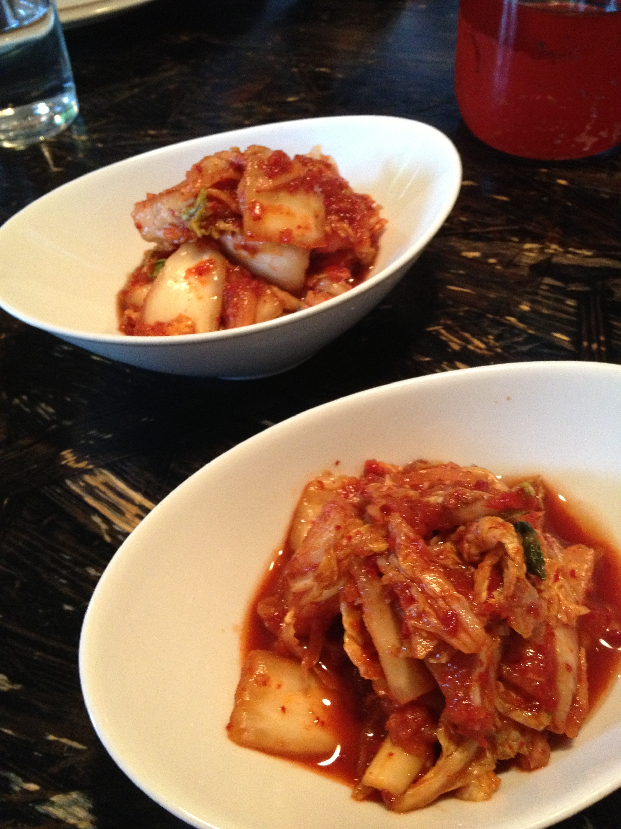 Bowls of kimchi to start off – nicely spicy!