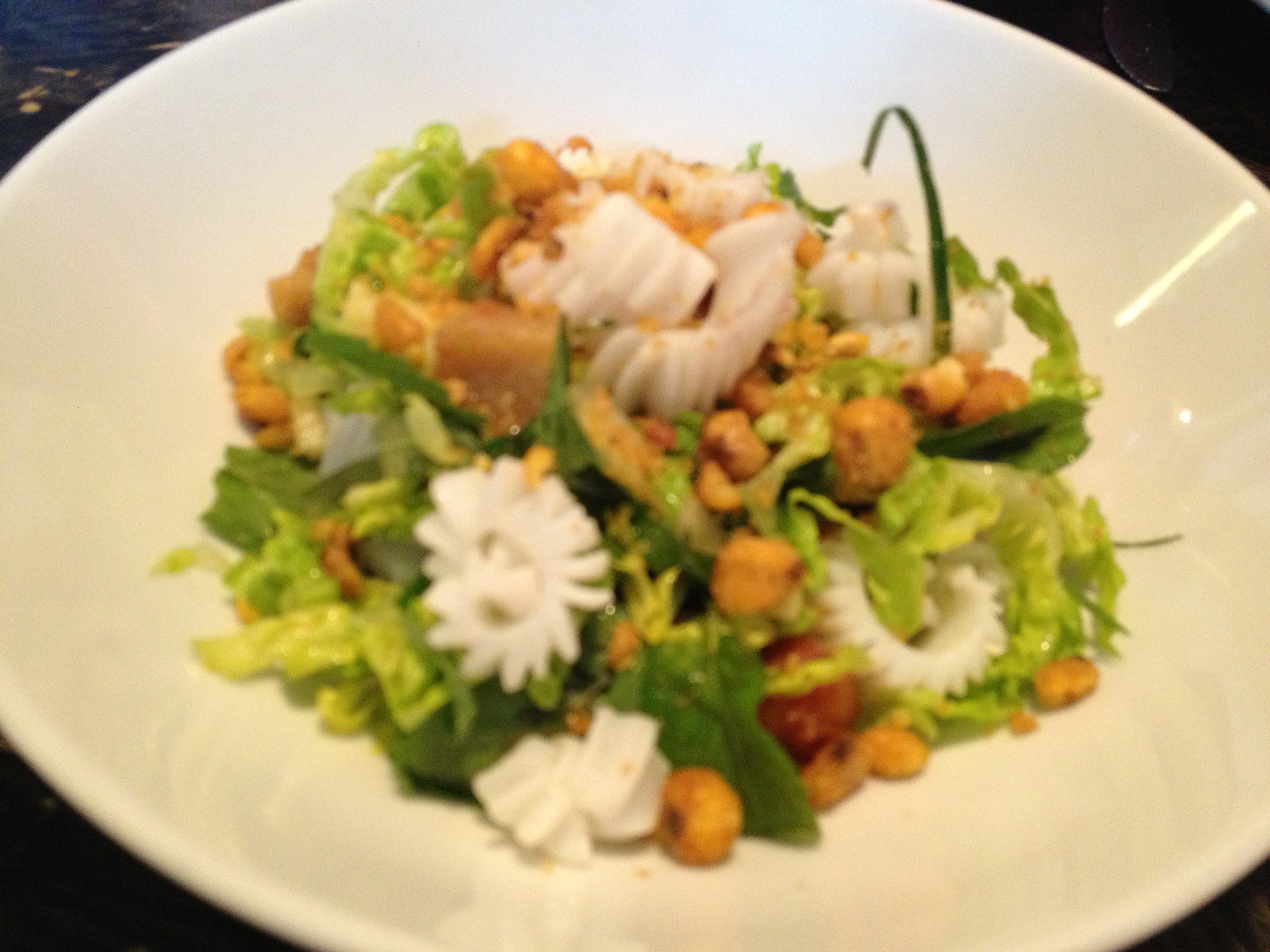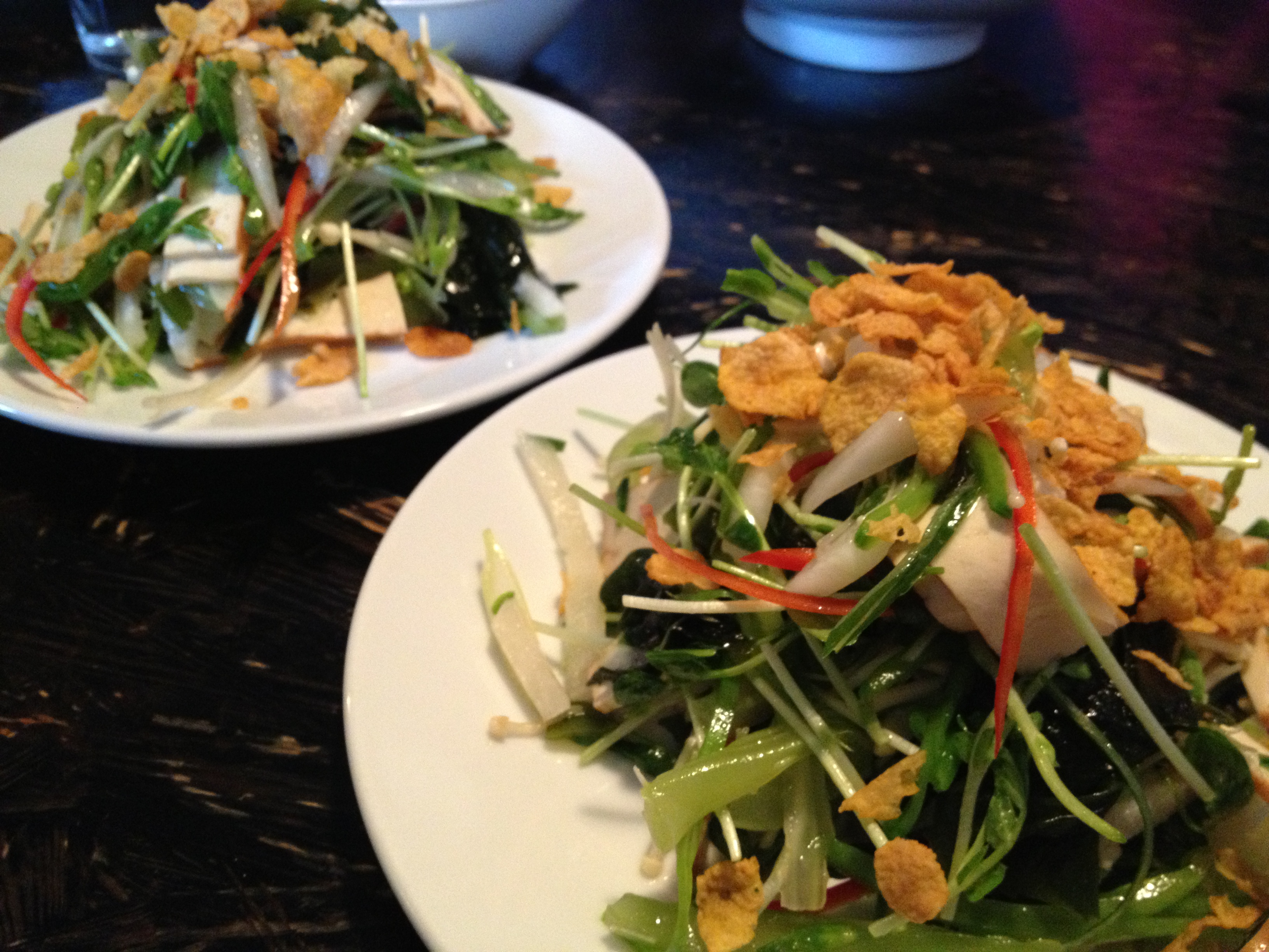 This is a dish I’ve had literally every time I go to the restaurant – the chef’s signature crunchy vegetable salad. It must have like 13 components, including crunchy cornflakes on the top, all sorts of greens and seaweed, and an incredibly light ginger vinaigrette.