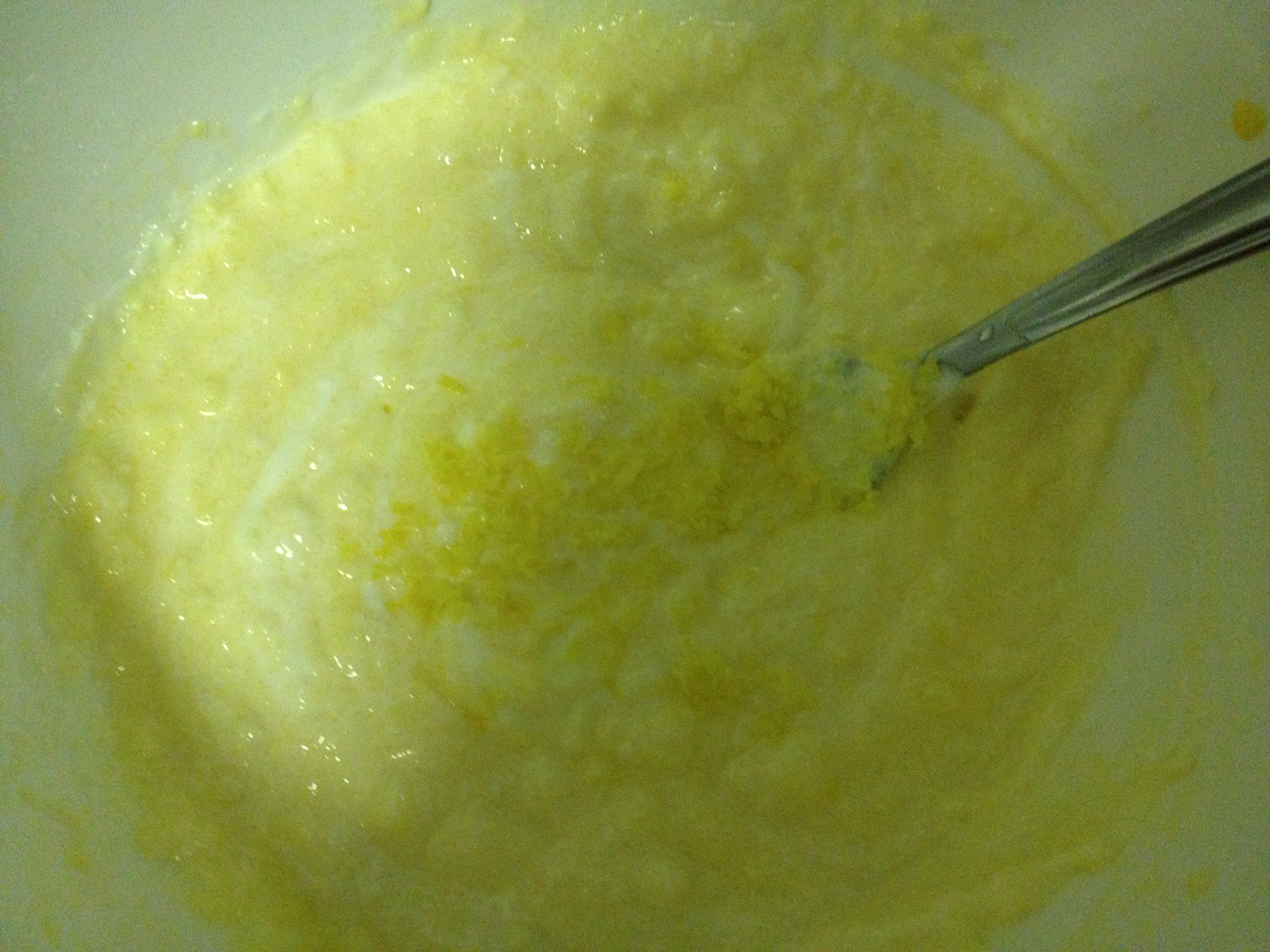 Adding in the yogurt and lemon zest