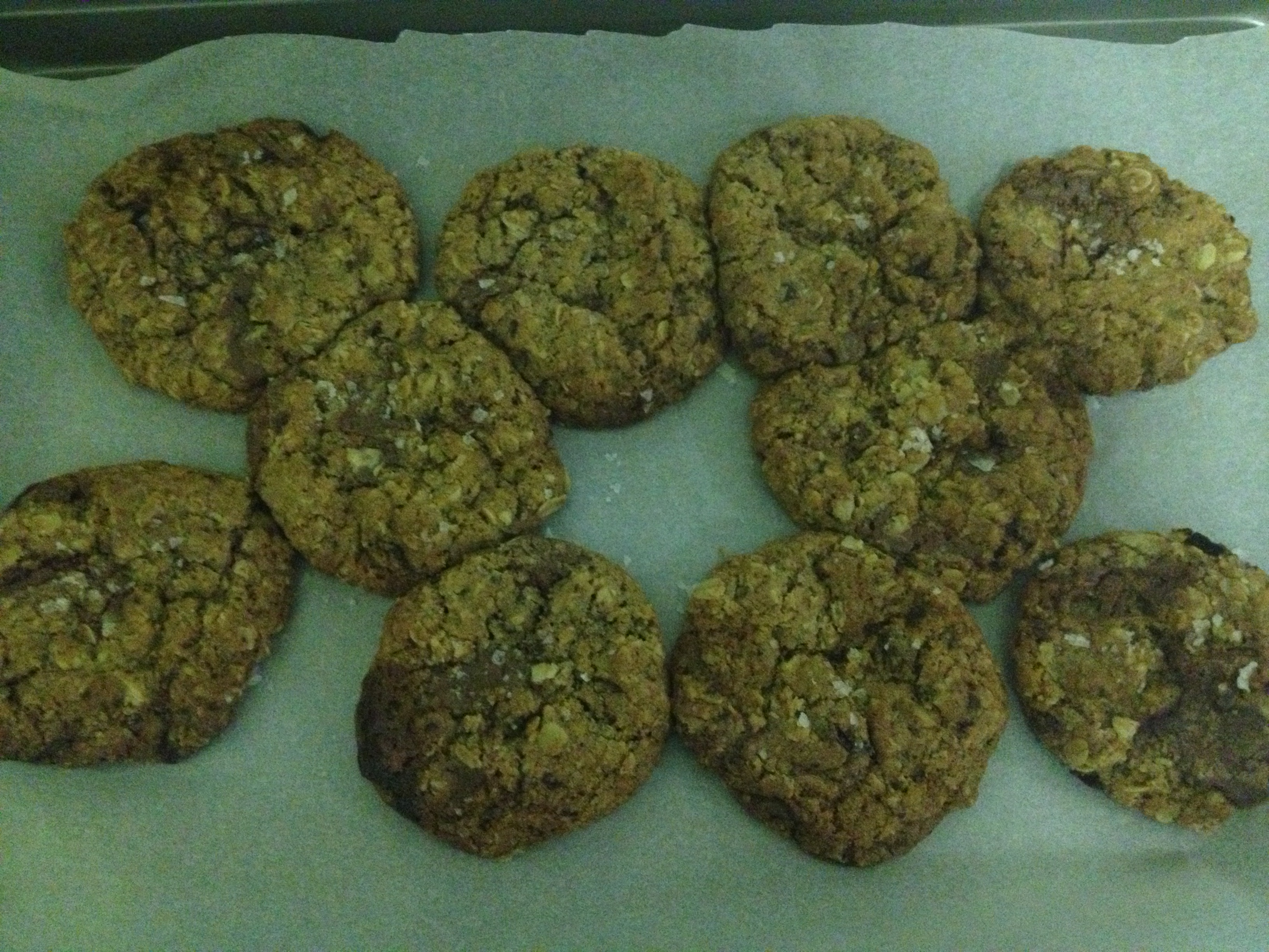 Salted chocolate chip oatmeal cookies (adapted from Emily Codik)