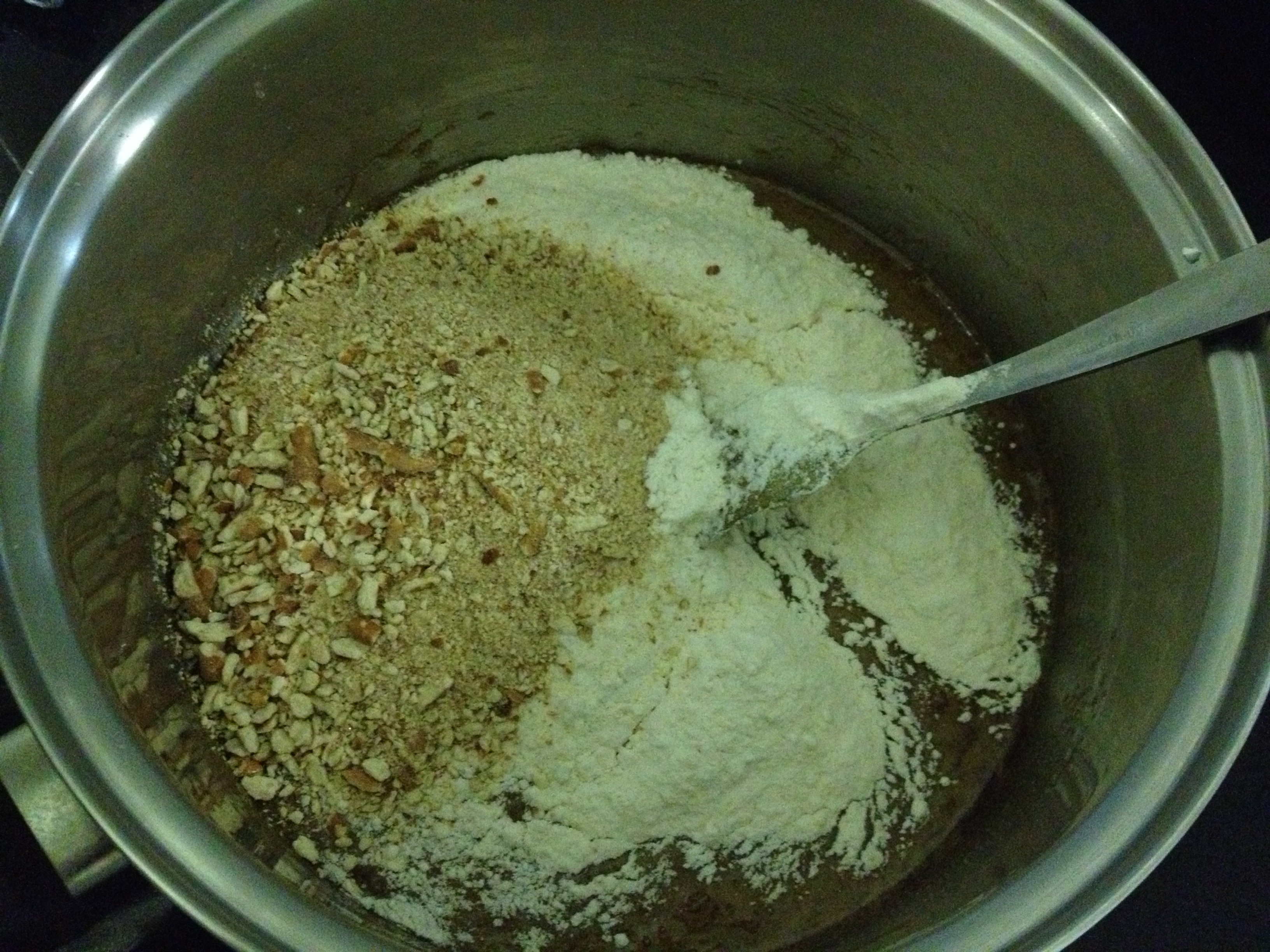And here come the mix-ins – M&Ms and chopped up Tim Tams!