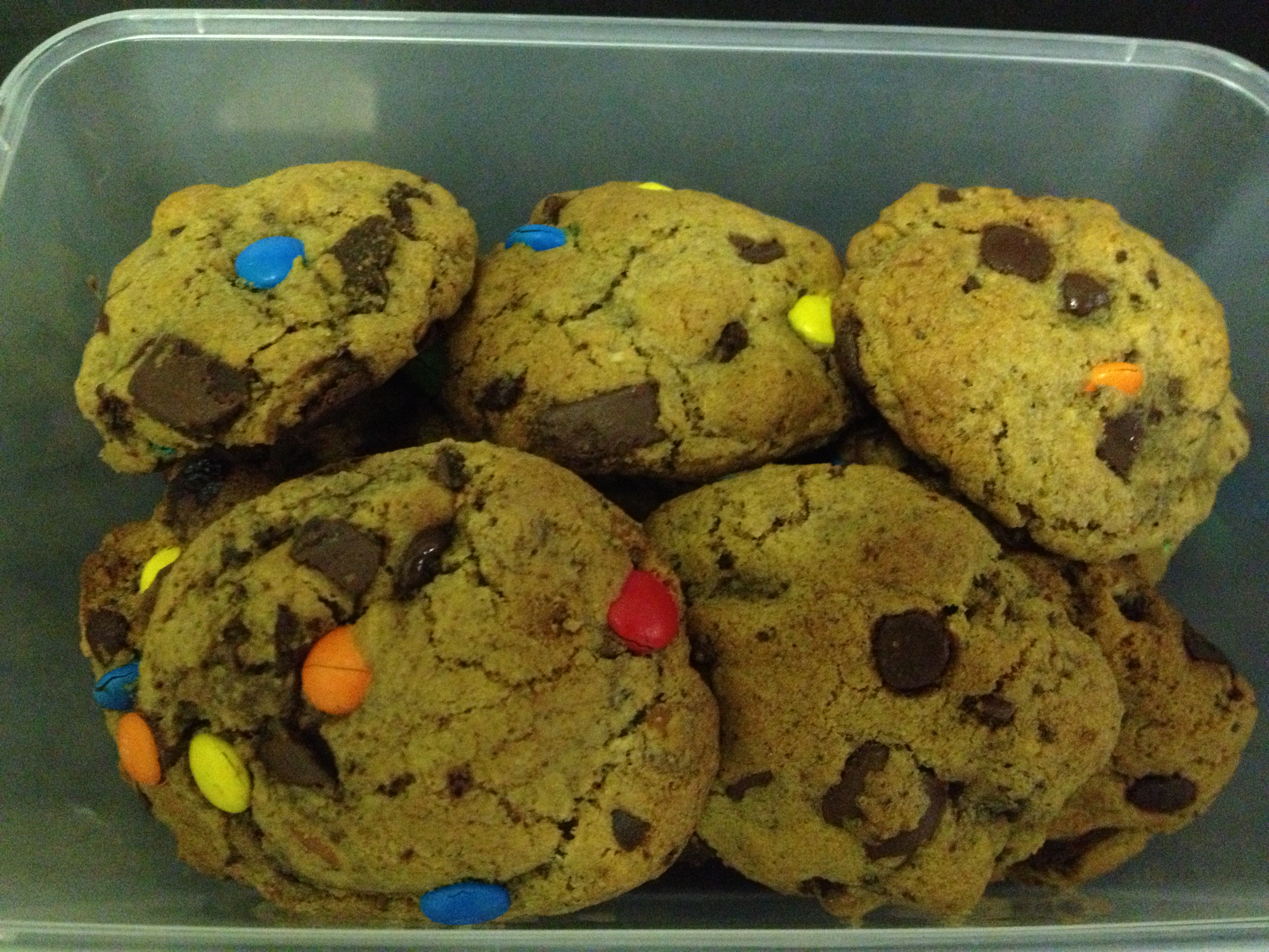 Ready to go into the oven. Love the colour the little M&Ms add to the dough!