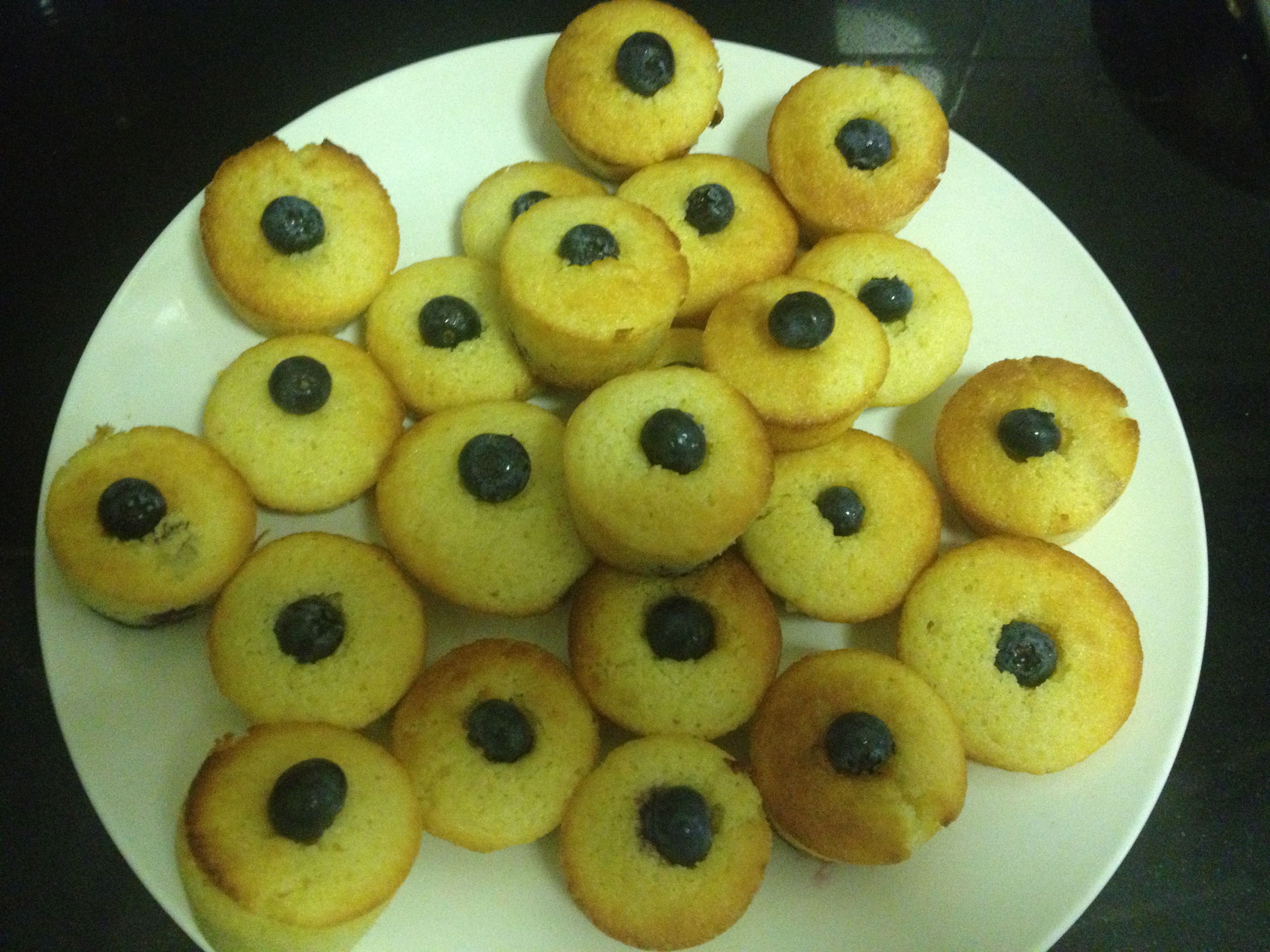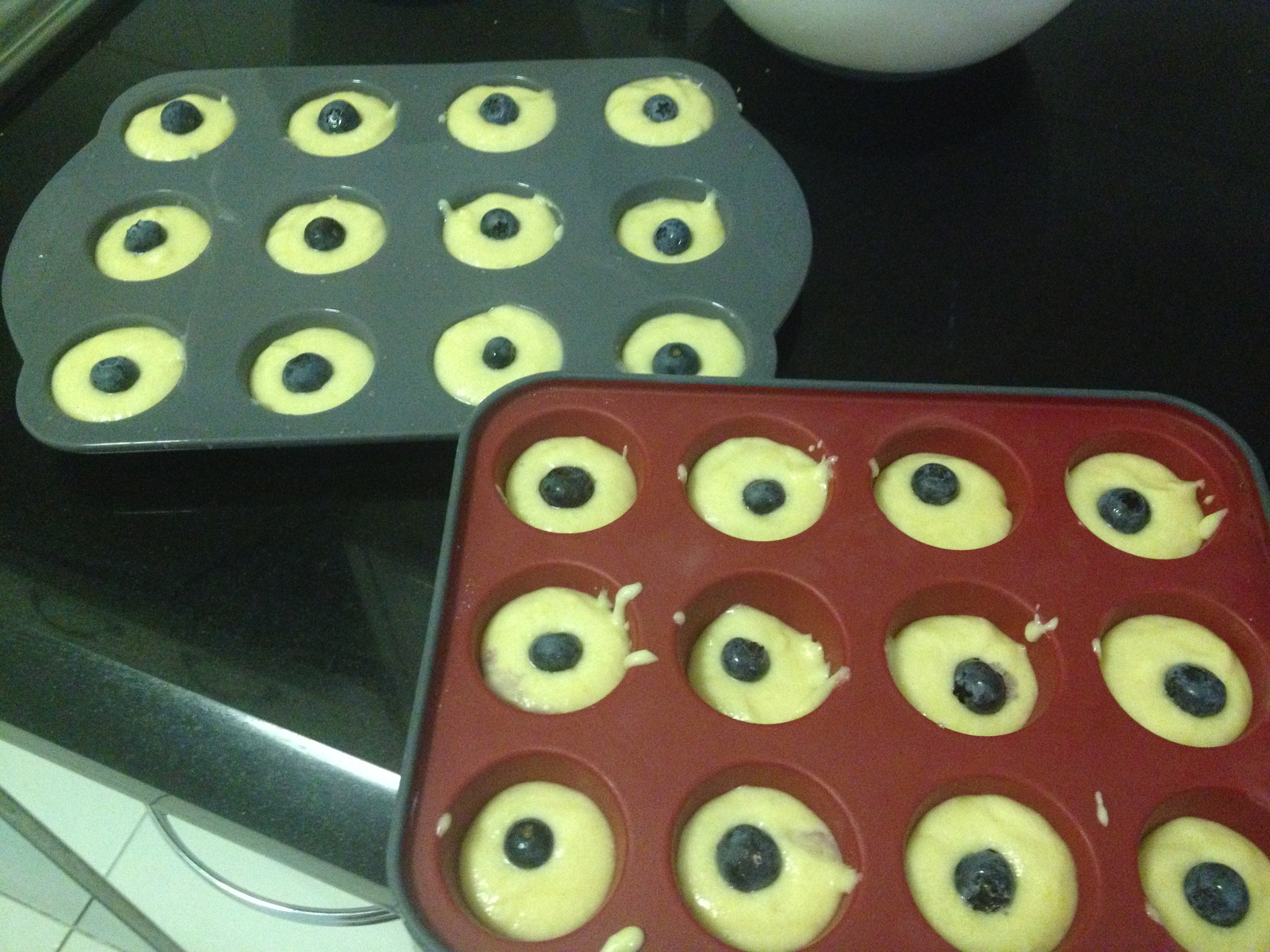 Preheat oven to 190 C / 375 F. Line about 12 standard muffin cups (you may need more) or all the mini muffin trays you own (and you’ll have to make multiple batches, but I always go mini because they are just cuter even though they are more time consuming). Mash 1/8 cup sugar and the lemon peel in small bowl until sugar is slightly moist. Cream the butter with the remaining cup of sugar in a large bowl until smooth. Beat in the egg, followed by the buttermilk and vanilla extract. Stir in your yummy lemon sugar mixture and then toss in the salt and baking powder. Finish off the batter by mixing in the flour until it’s smooth.