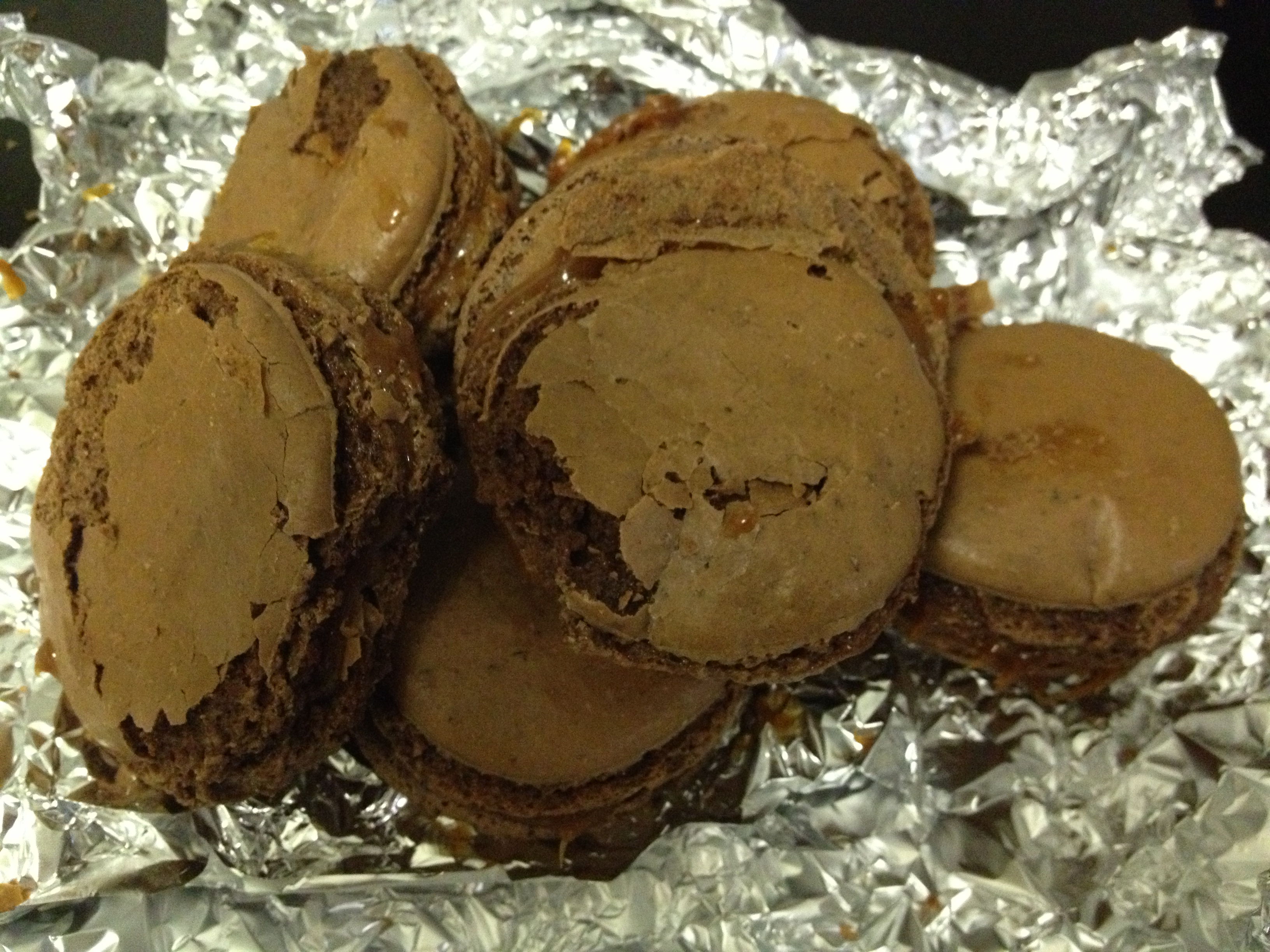 Chocolate and salted caramel macarons