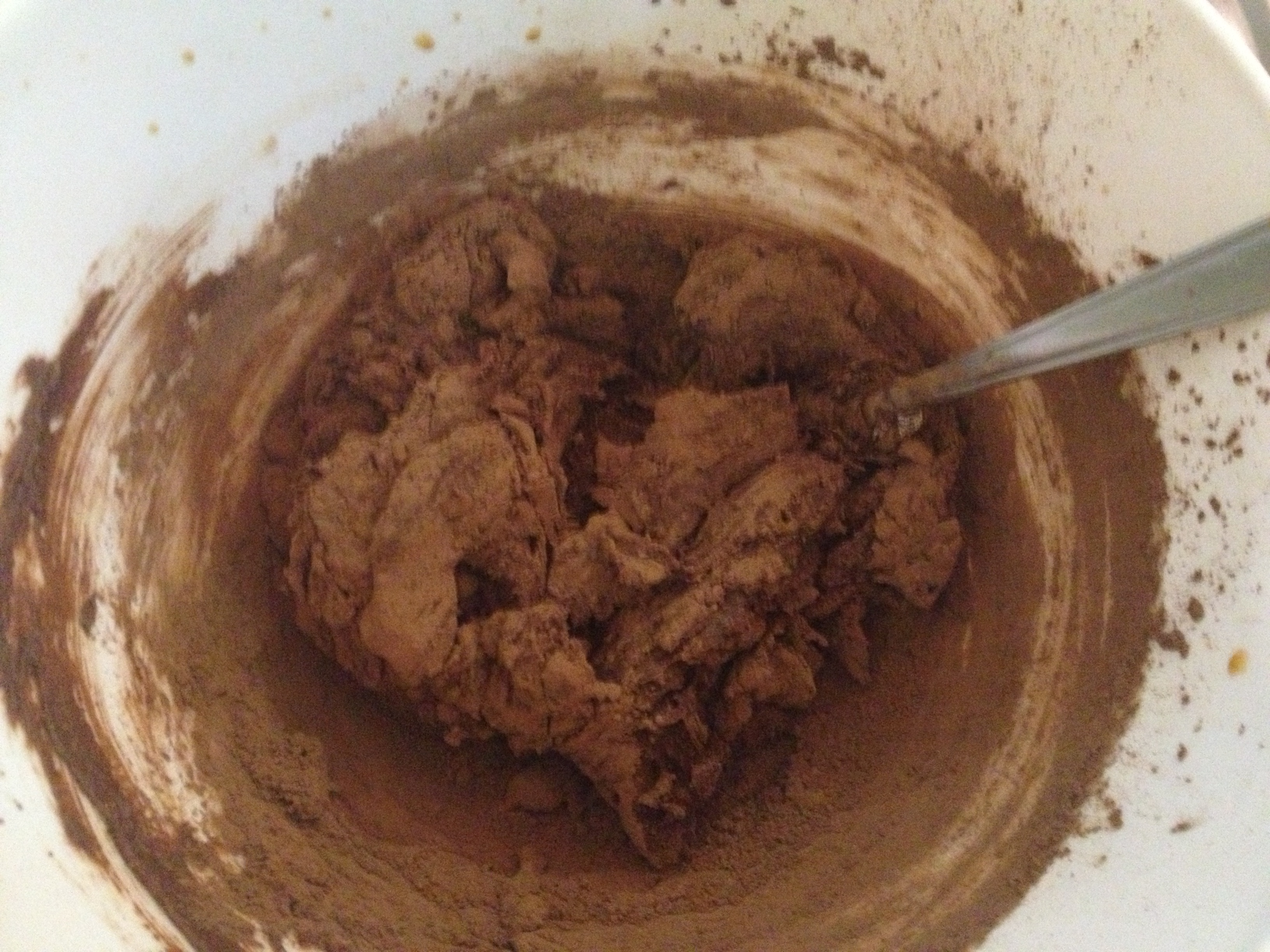 Melt the chocolate in a heatproof bowl over a hot water bath or on medium-low power in a microwave, stirring occasionally. Set aside to let cool. Beat the butter and light brown sugar together for a couple of minutes until fluffy. Beat in the eggs and vanilla, then beat in the melted chocolate. Sprinkle in the salt and baking powder, and then add the cocoa. Mix about half the flour in, followed by half of the milk. Then mix the remaining flour and the remaining milk until combined. Place the dough in the refrigerator for a minimum of 2 hours or until the dough is firm.