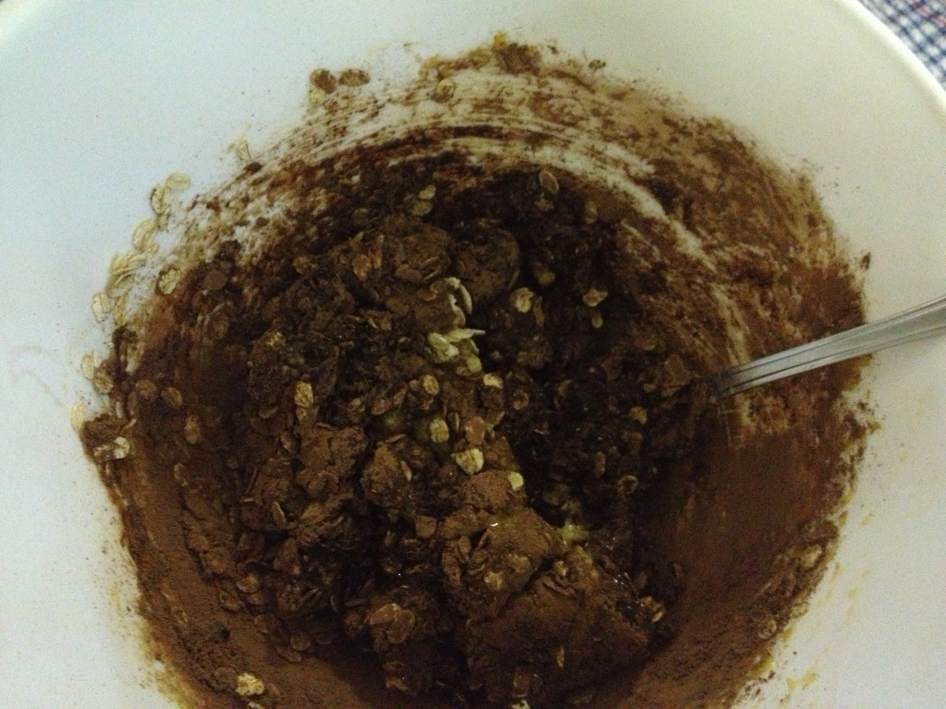 Making the very chocolate-y cookie dough (thanks to a heaping portion of cocoa powder on my part)