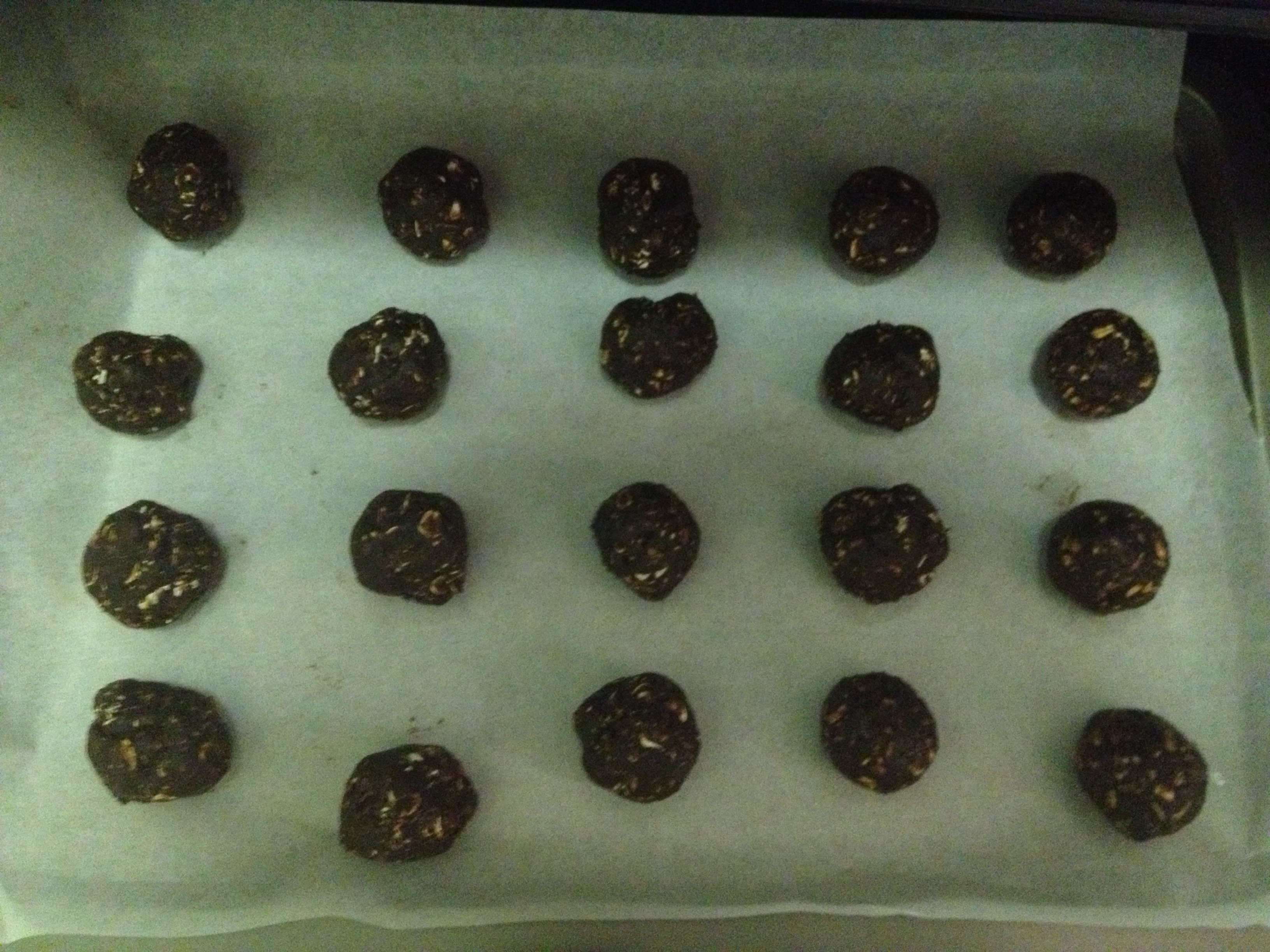 Chocolate oatmeal cookie dough sandwiches (adapted from Itsy Bitsy Foodies for the cookie part – the other part I just kind of made up)