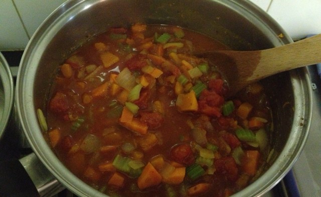 Butternut squash chickpea chili (adapted from The Roasted Root)