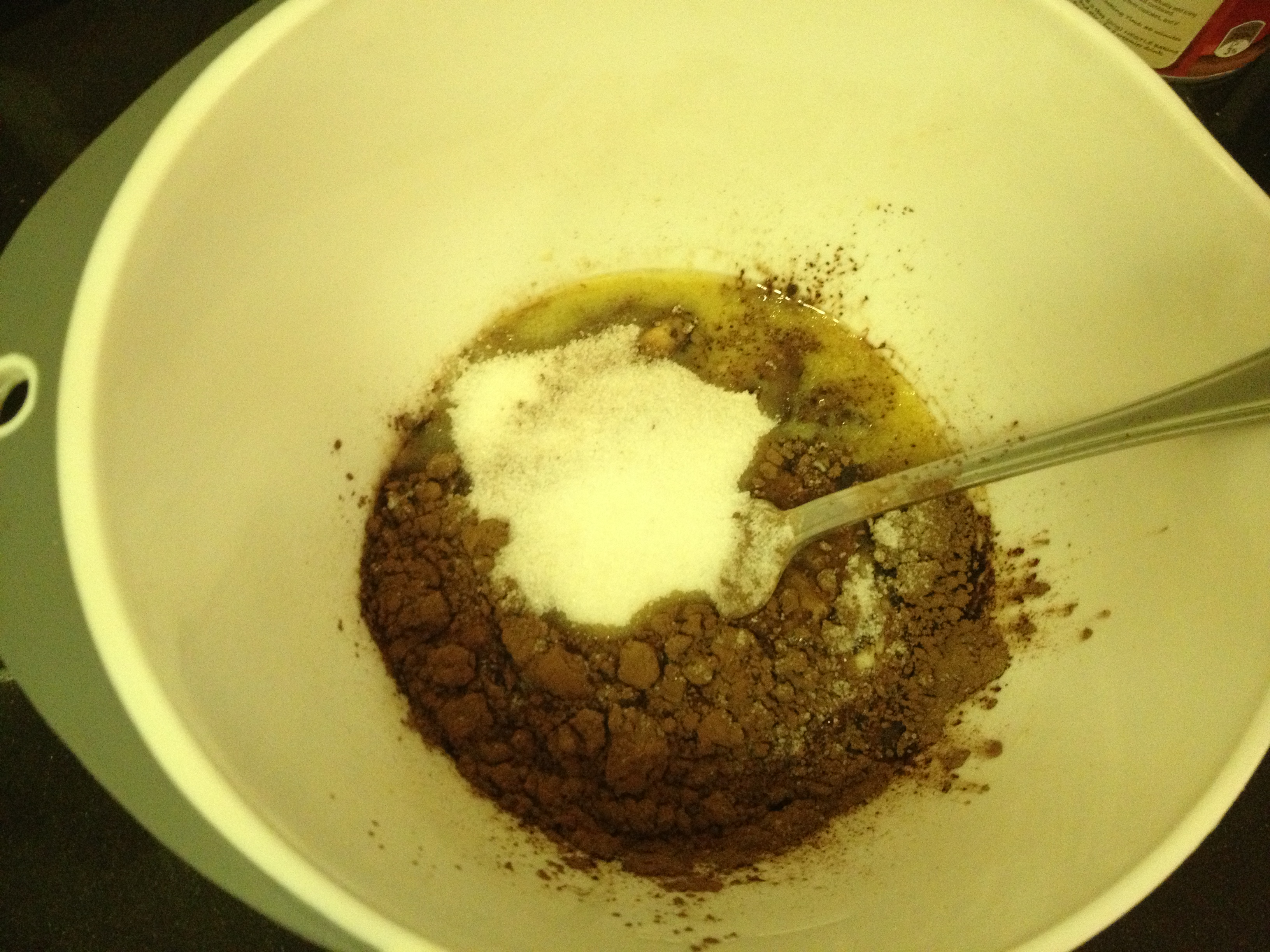 The finished batter – needs a bit more stirring at this point as the oil is separating a bit, but just give it a good stir before putting it into the cupcake liners and it won’t be a problem