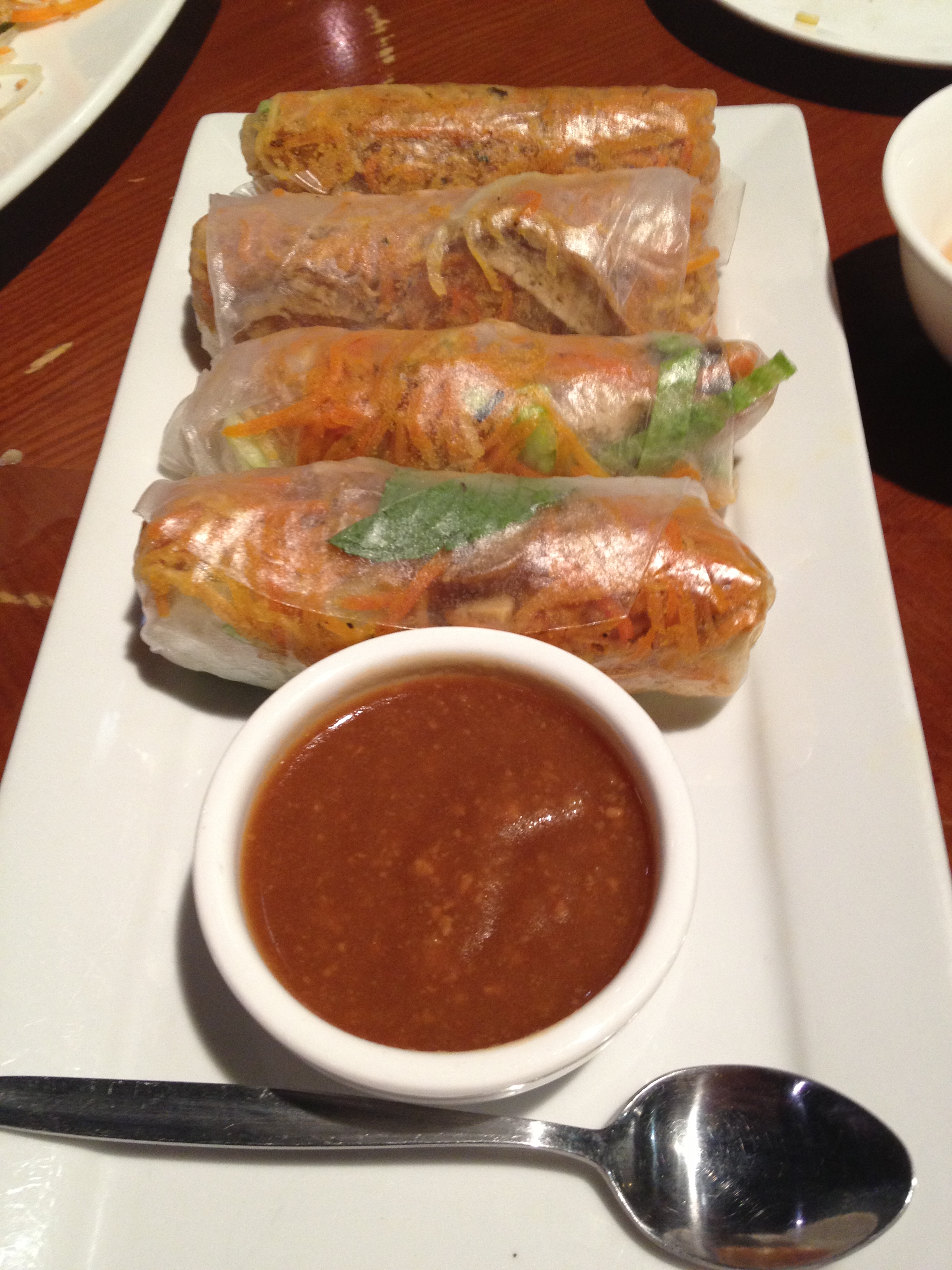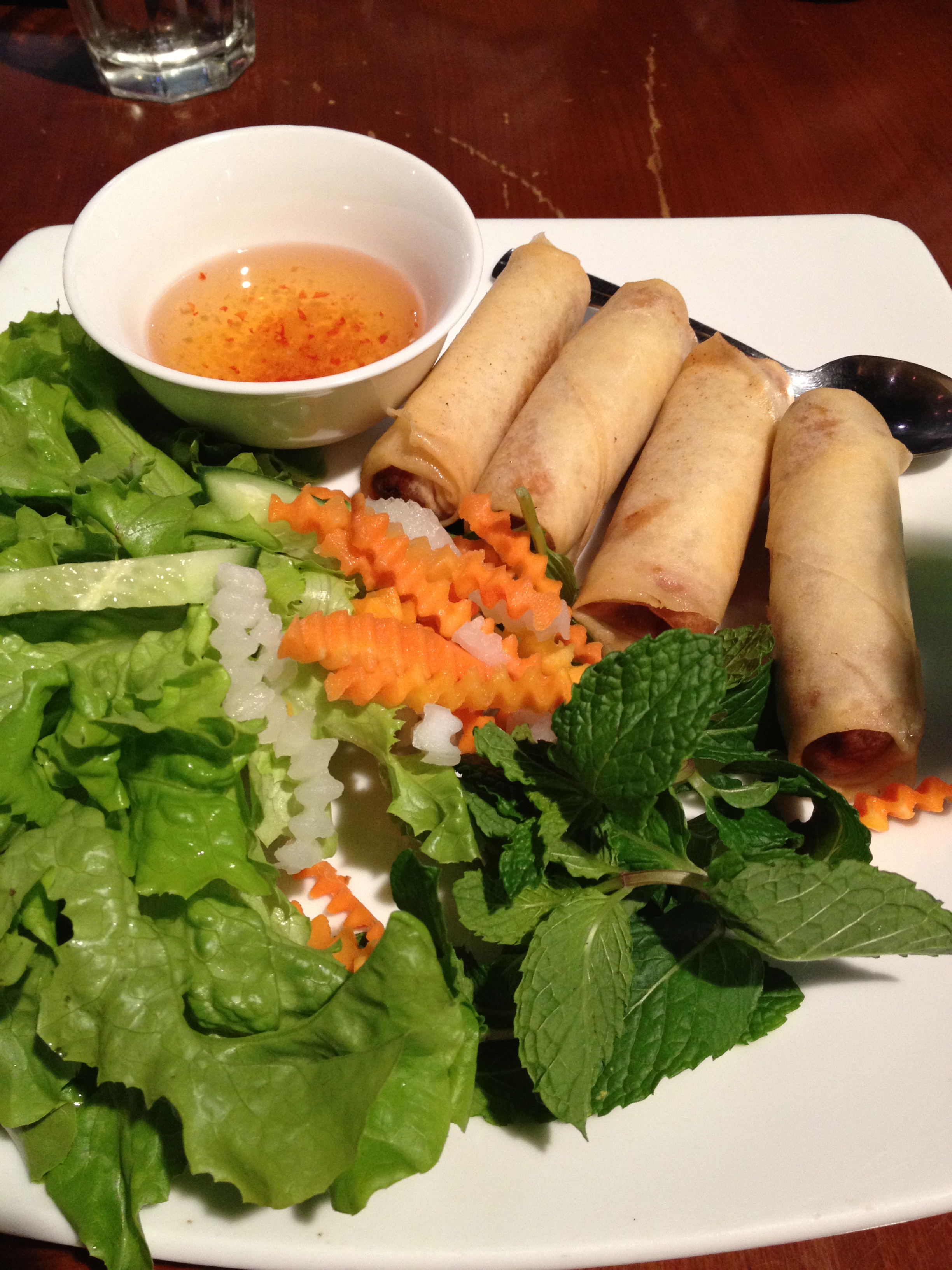 Crispy chicken spring rolls. Loved all the fresh herbs and salad accompanying them!