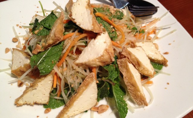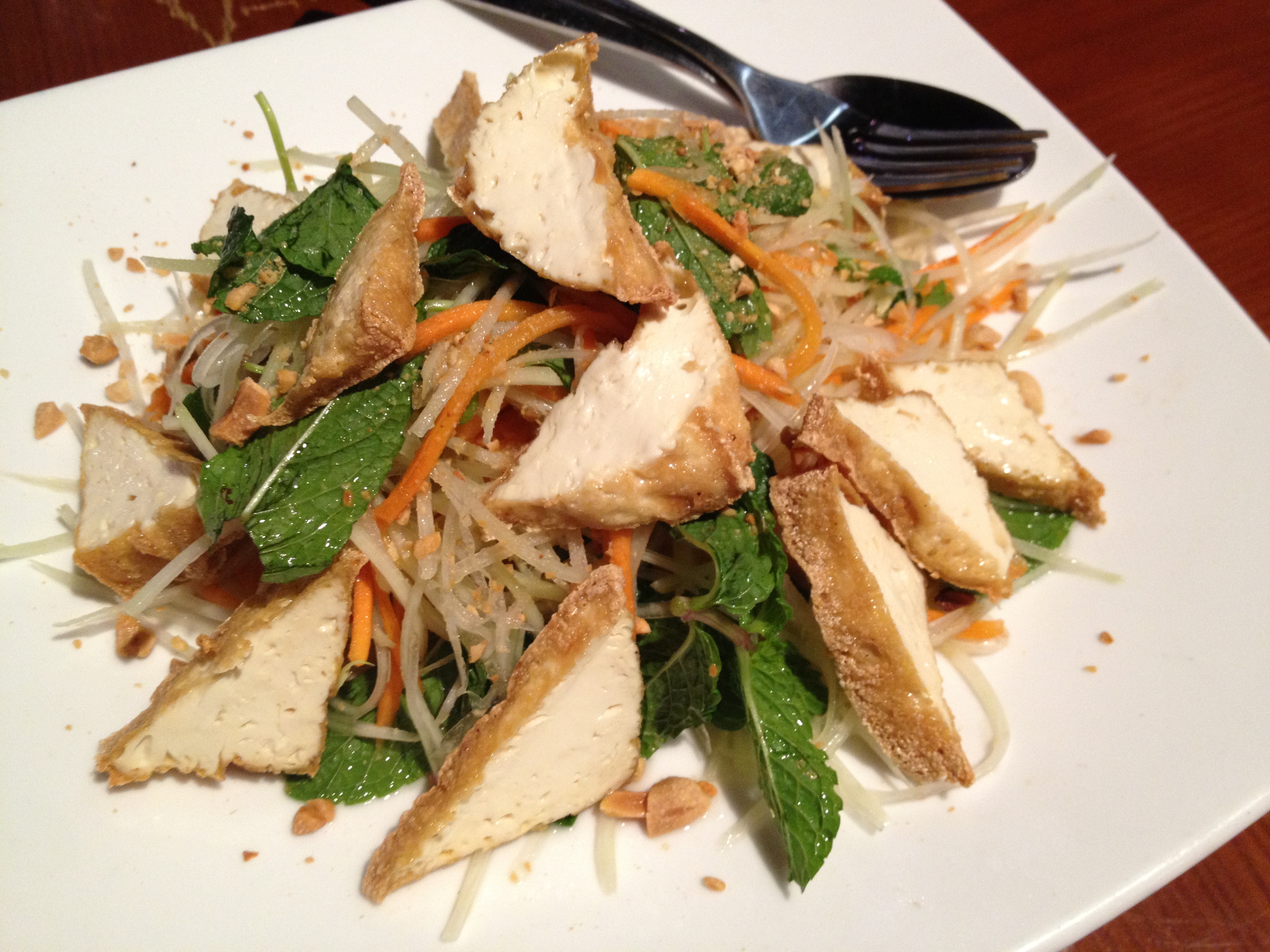 Fantastic green papaya salad with tofu. I loved the mint and the fact that it wasn’t too spicy but was still quite flavourful. (I’ve had some Thai papaya salads that have made me cry.)