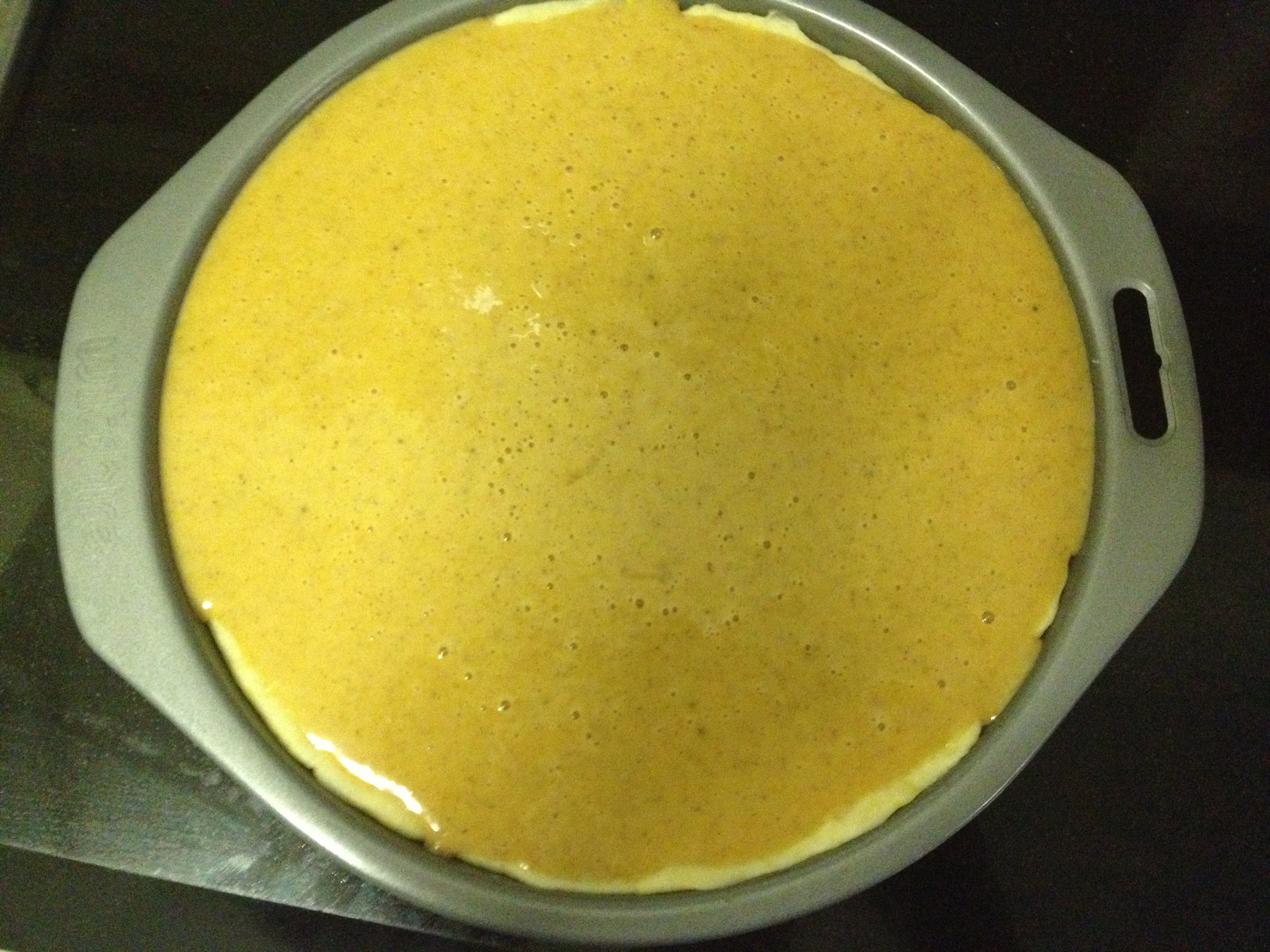 The pie filling will go right up to the top (I think my circular pan is slightly smaller than it should be)
