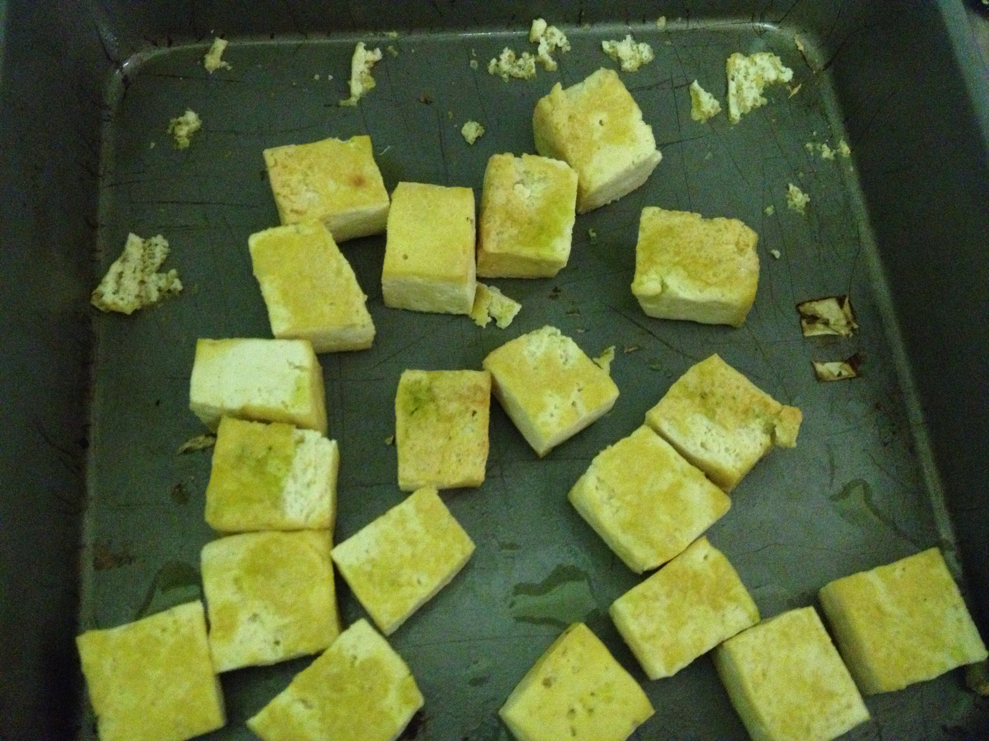 Unbaked tofu in the pan…