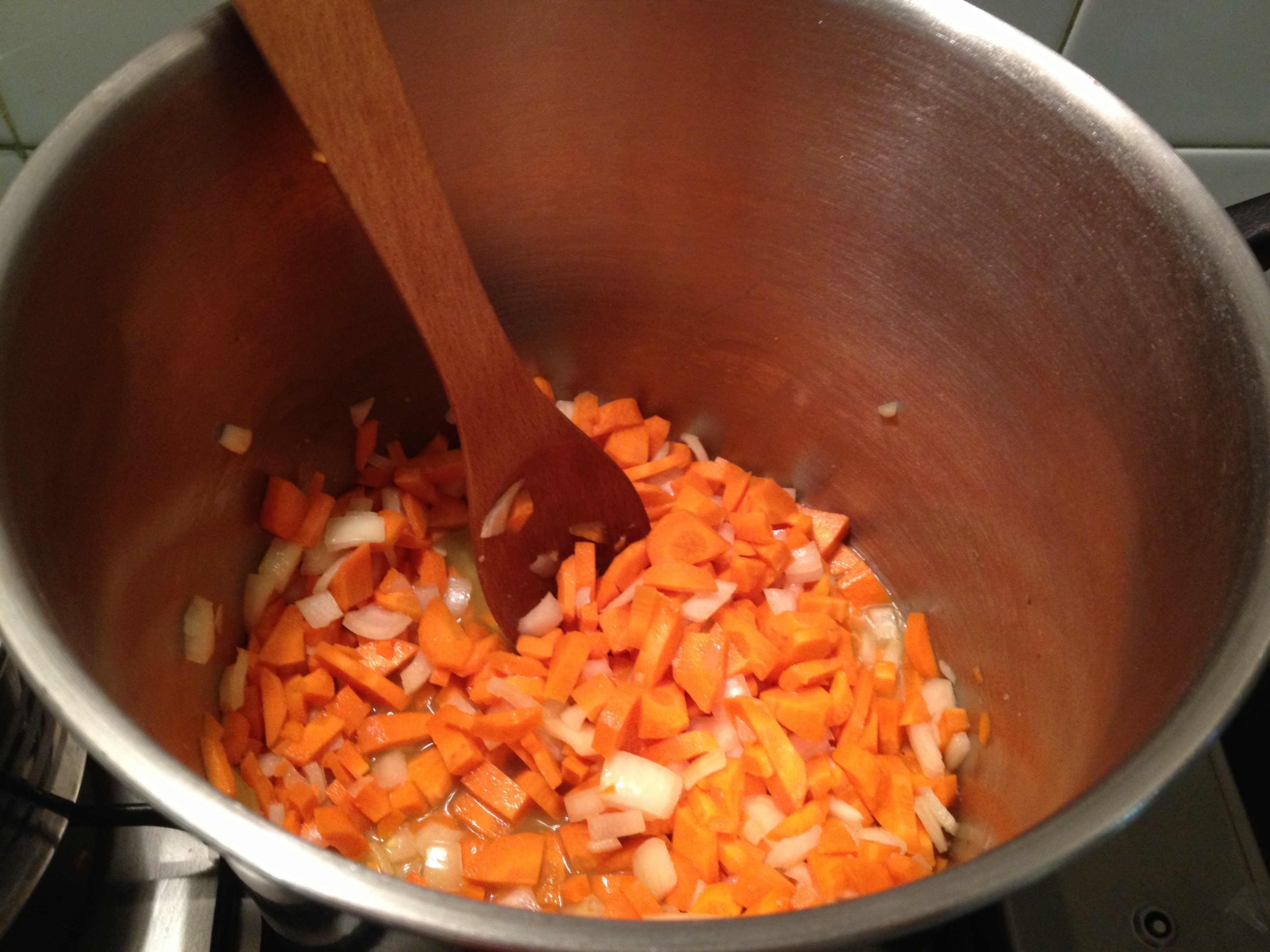 Sauteing carrots, garlic, and onions