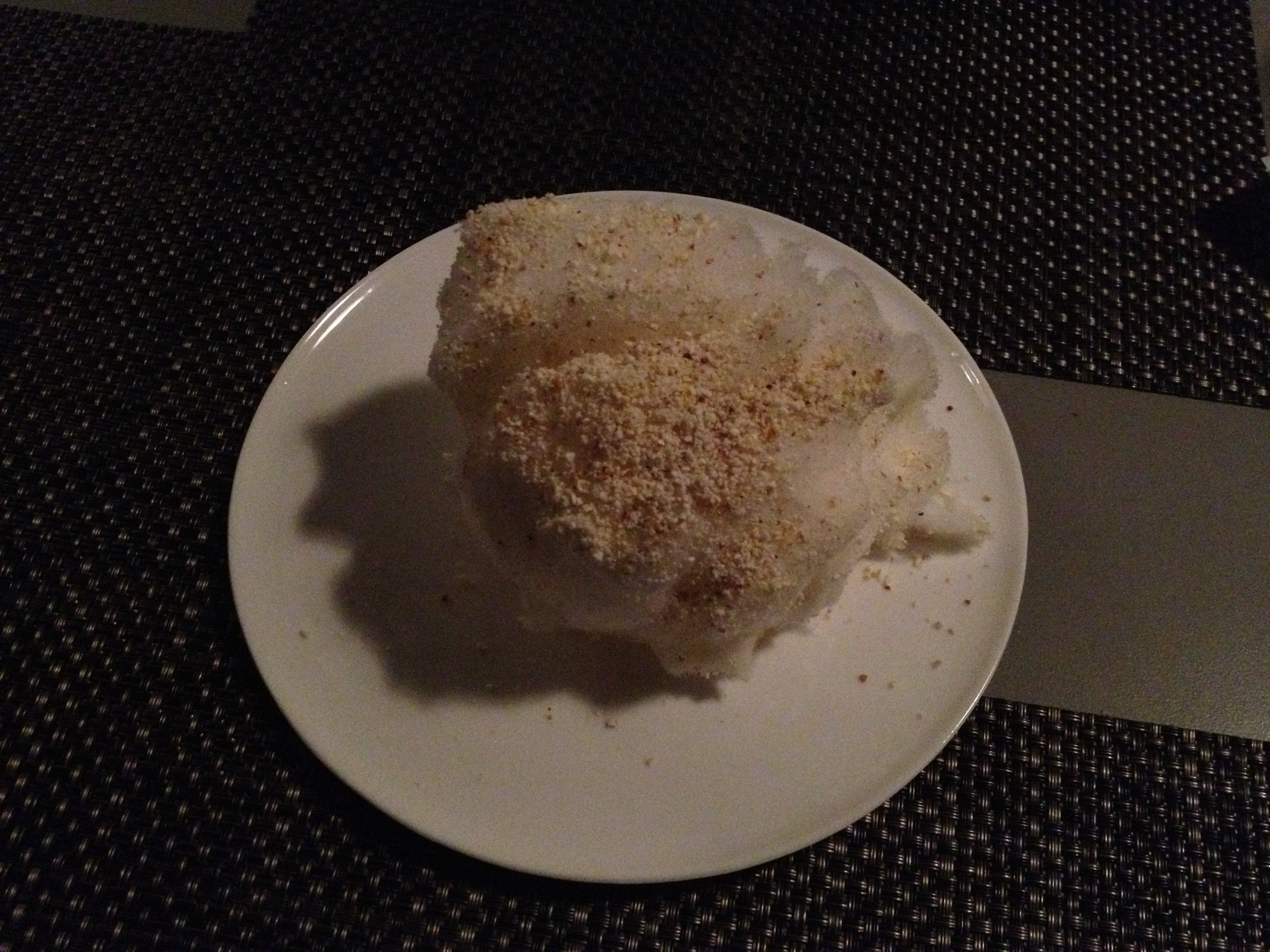 So, this course was listed on the menu as “corn and butter” and I was like, ew, who wants that after dessert. Well turns out it was popcorn flavoured FAIRY FLOSS (aka cotton candy, for you Americans). But like no other cotton candy I have had at an amusement park…no, this was light as air and not too sweet and melted in your mouth. What an amazing tastebuds trip.
