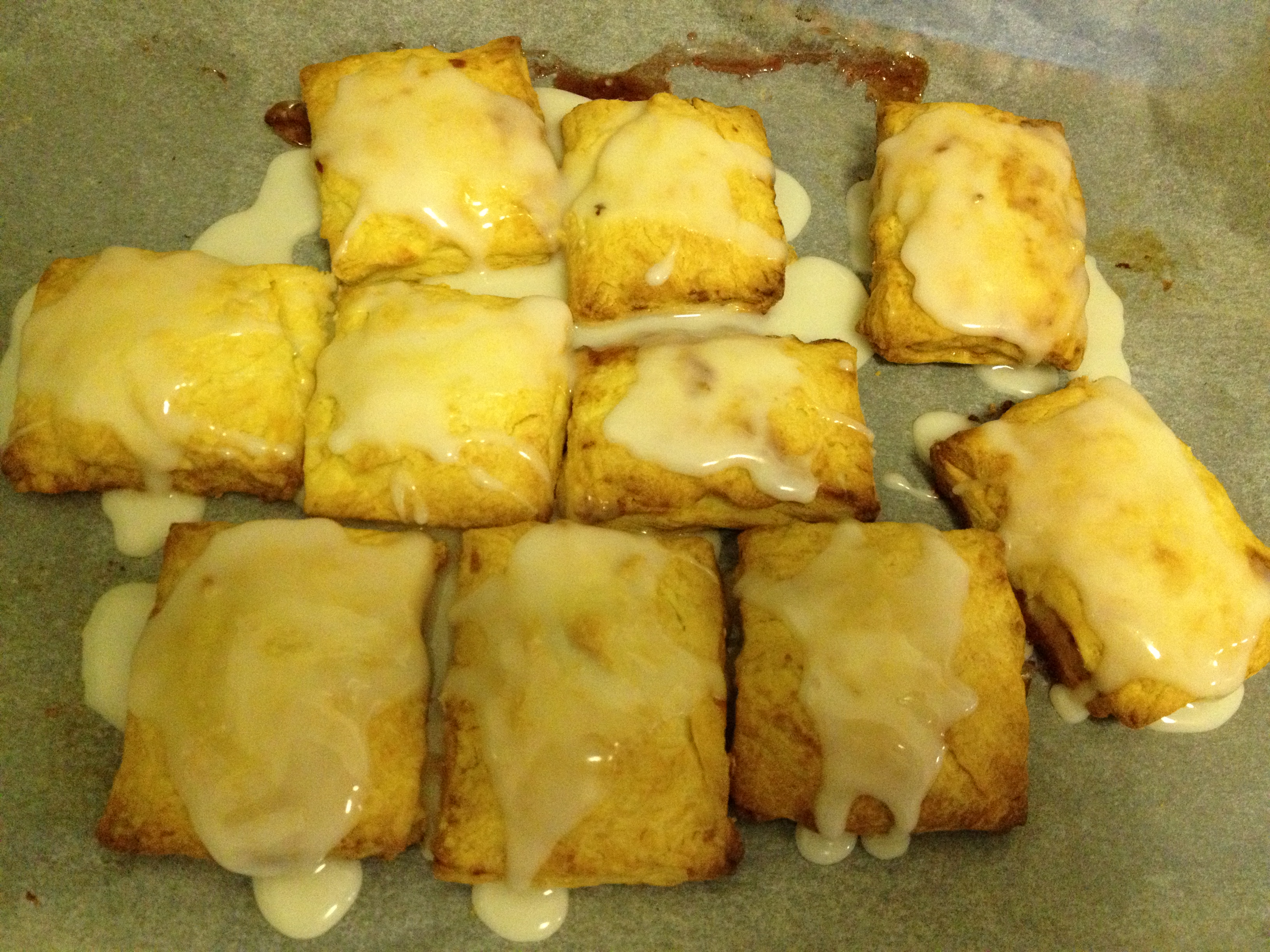 Finished pop tarts nicely browned and just out of the oven – wait till they cool at least a bit to glaze them though