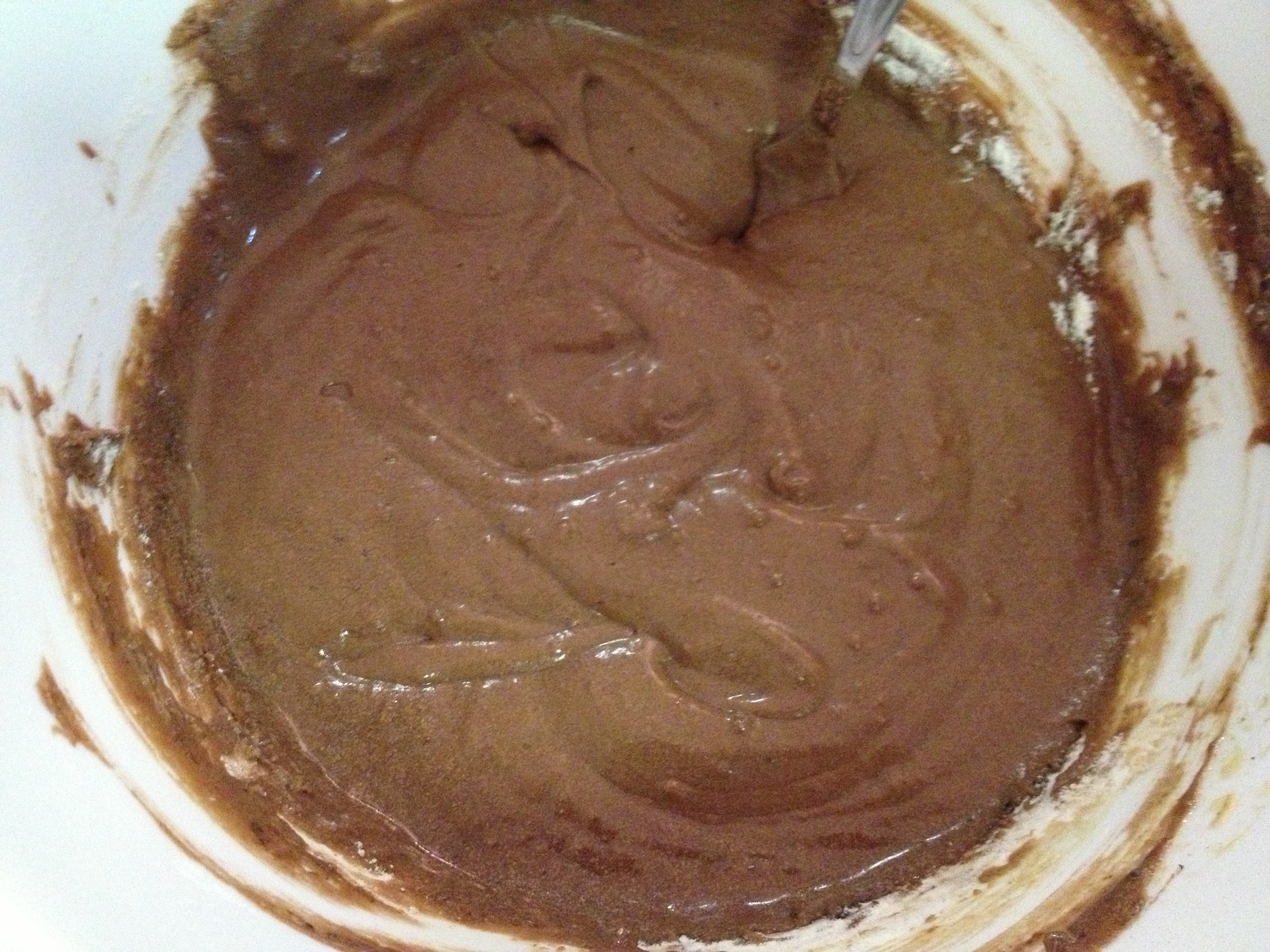 Once you add the dry ingredients, it will become this beautiful silky combined batter like this