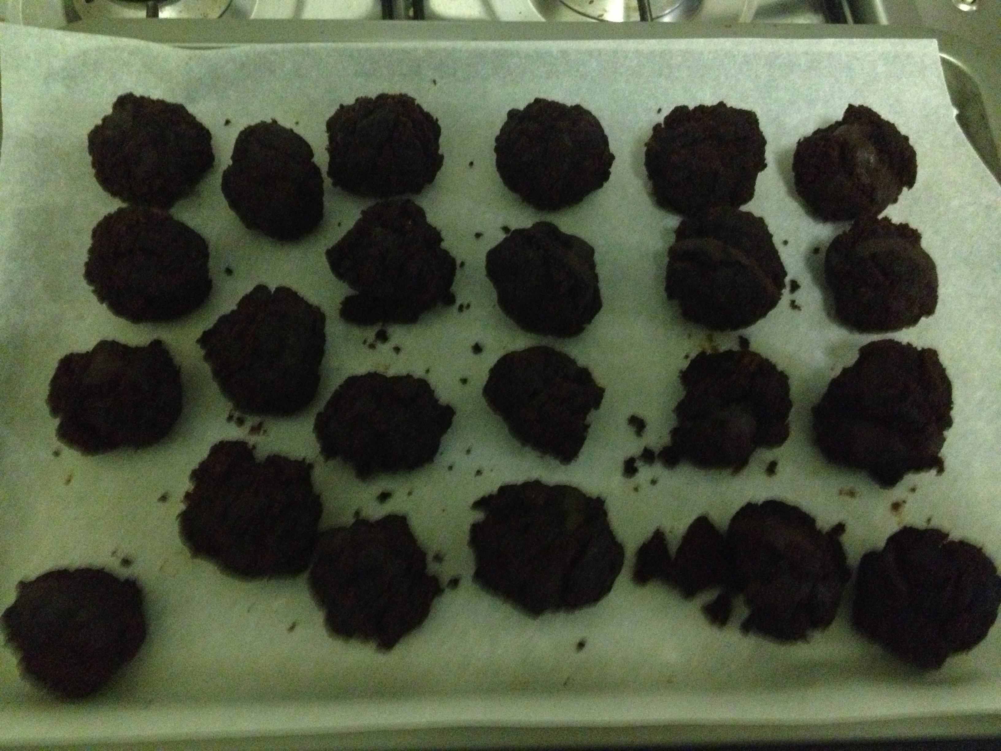 Using a spoon, spoon the meringue over the cake balls. If you have a kitchen torch here (like a creme brulee one), this is an ideal time to use it – just use it to toast the meringue all over. If you are a sad excuse for a cook like me and don’t have one, then preheat the oven to quite a hot temperature (220 C / 450 F) will do, place the cake balls covered with meringue on a high shelf of the oven, and broil it until the meringue gets golden brown and toasty. Be VERY careful if you do this – definitely no more than 5 minutes or they will burn to a crisp! I checked after about three minutes and they were done. The only problem with this method is that it makes the ganache all melty as well so really they are just sort of a mess.