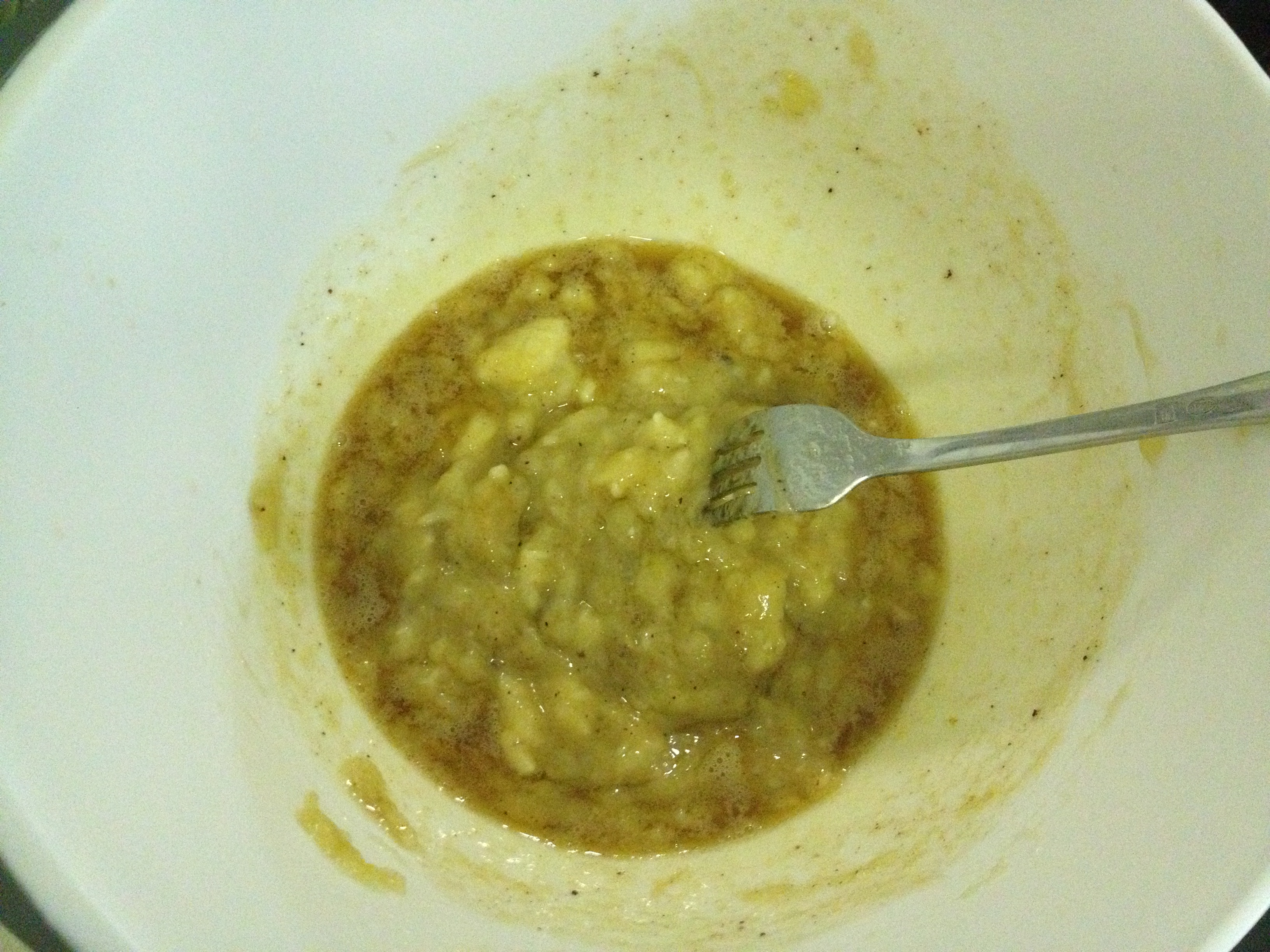 3 medium overripe bananas, mashed (if yours are frozen let them defrost in a bowl for a while and drain any excess liquid from them before mashing)