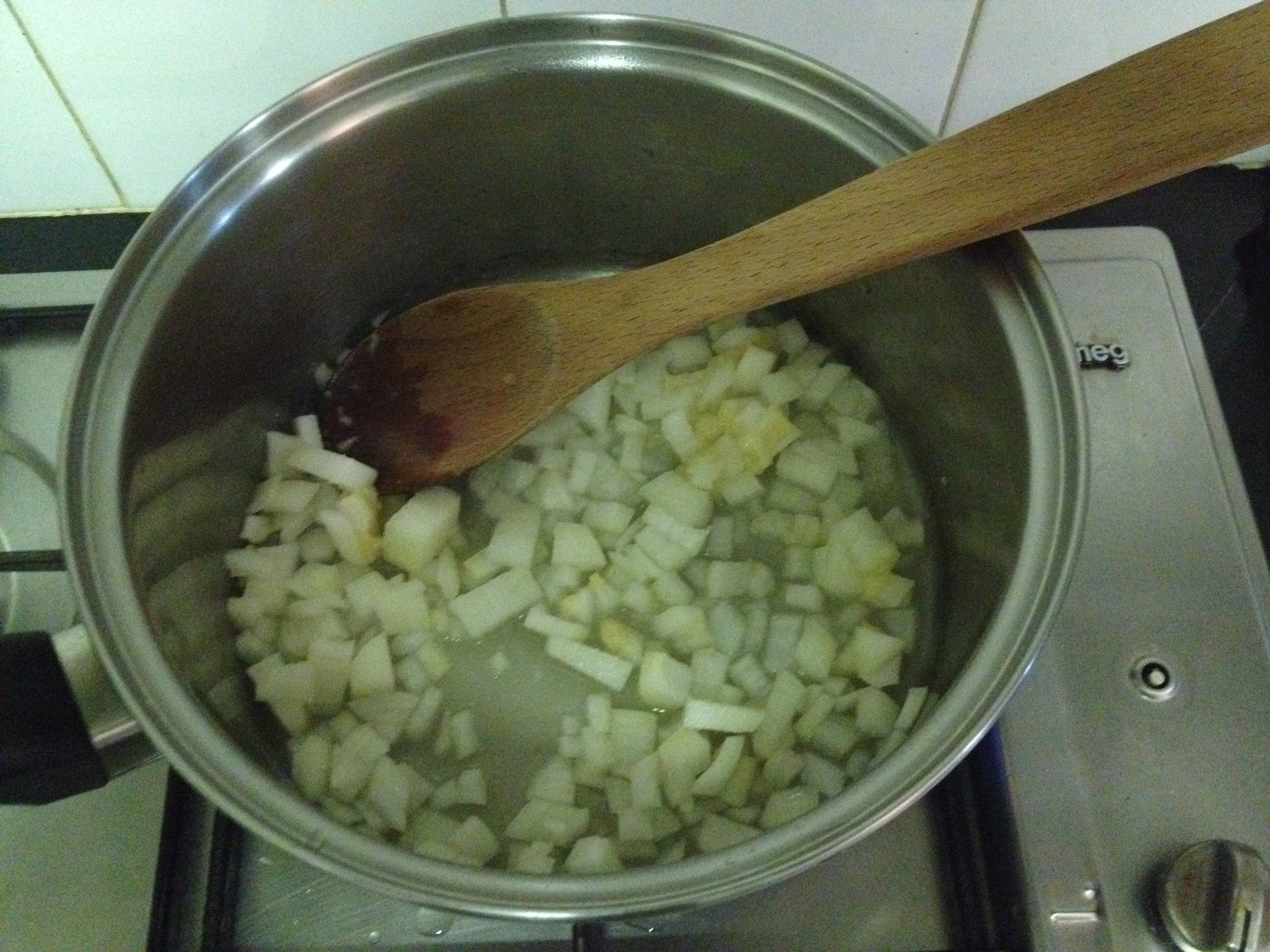Sweating the onion and garlic in a pan to start the soup off