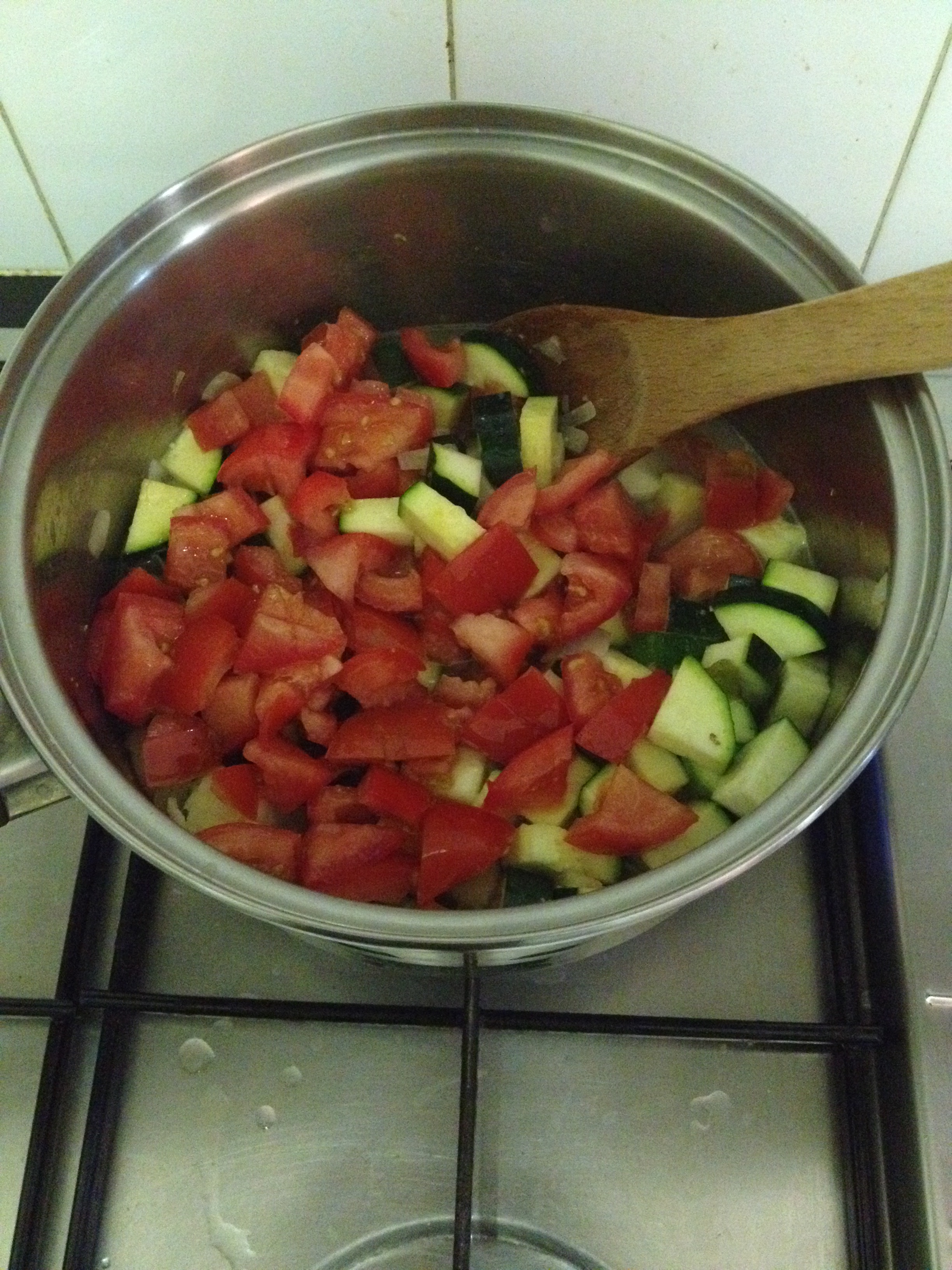 Cutting up the zucchini and tomatoes